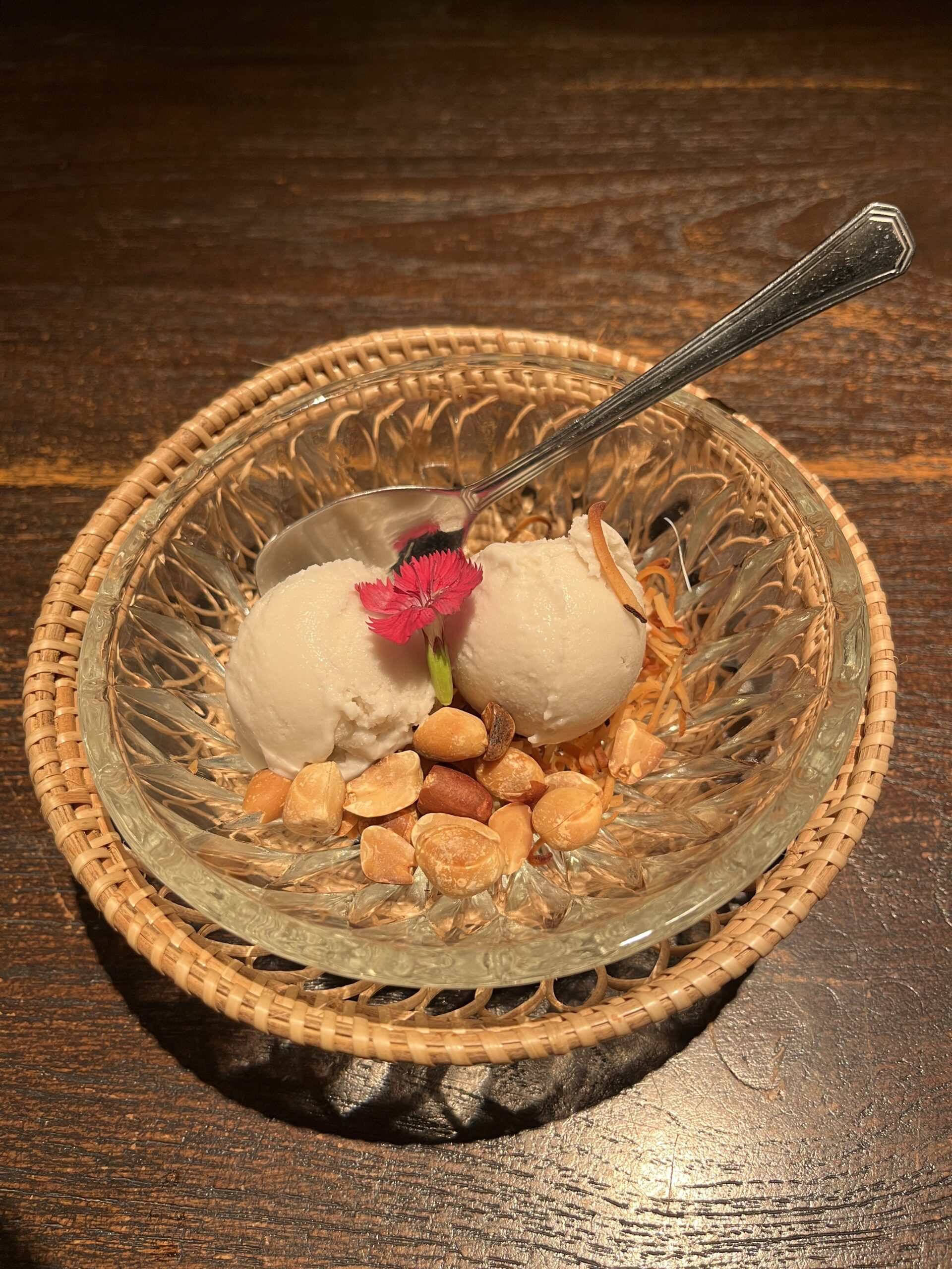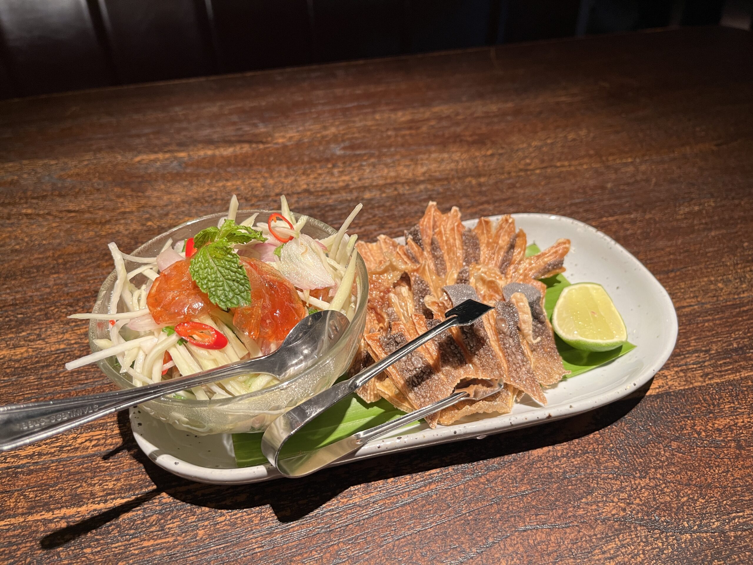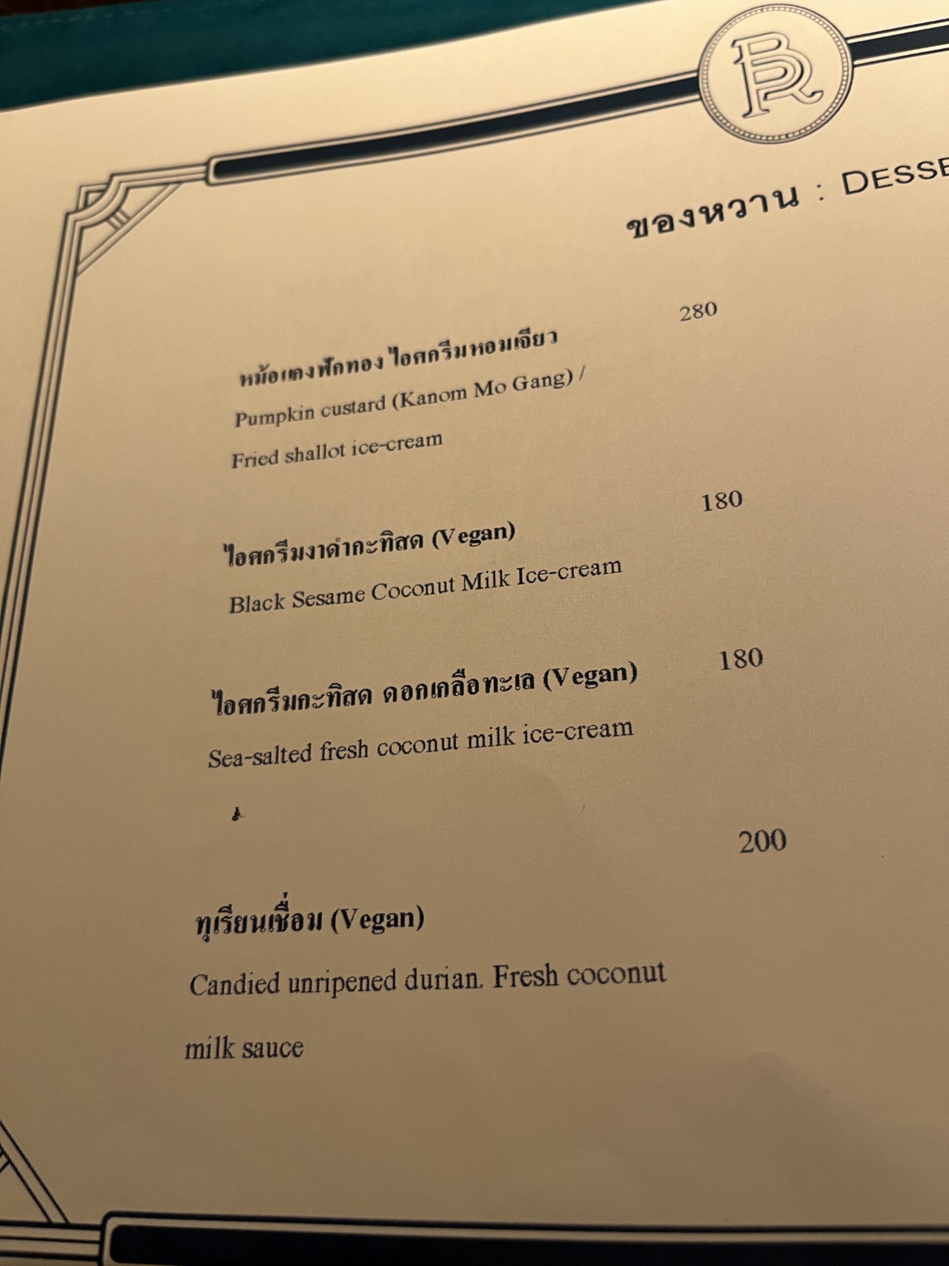 Burapa was also a recommendation from the Michelin Guide. It’s mid-priced, but the food is very upscale. I’ve been there five or more times now. There are a few dishes with tamarind and also with durian (although the dessert with unripe durian isn’t exactly amazing). All the starters are actually delicious, my favorite being the ceviche-style shrimp. Very spicy, with garlic and herbs. The only downside is the service; they don’t suggest rice with a curry, but they do with something that doesn’t actually have any sauce. Also, the courses are always randomly mixed up. But the food itself is too good not to go back ;).