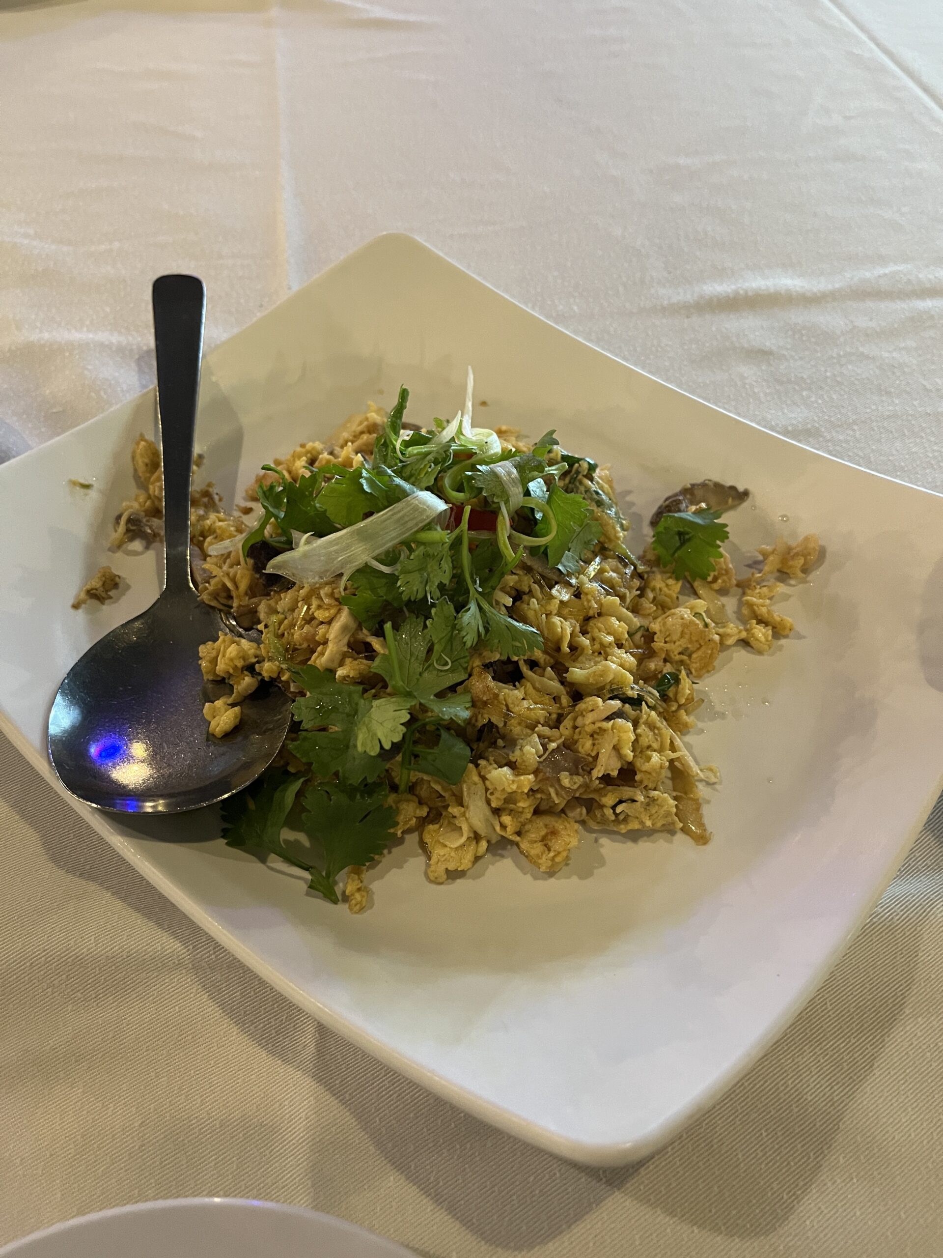 Arrived in KL on Monday morning, a bit exhausted from a 20-hour flight ;), set up my network, and got the office ready for work. That left little time for research, and the first disappointment was that the Michelin app for KL didn’t yield any results :(. Okay, I Googled what was near the Pullman (I can see one place right from the window, Foodtruck Park, but that wasn’t what I was looking for). Google found Hakka 600m away, and I went there. The restaurant is mostly outdoors (although it can be covered if needed). Lots of large, round tables with the rotating table that’s typical of Chinese restaurants for sharing. You’re not really welcome as a single guest (especially without a reservation). Hakka quickly filled up. I ordered something with Grab and something with egg that was supposed to be wrapped in lettuce leaves. It was actually very good, and I think I’ll go there again (especially since it’s very close).