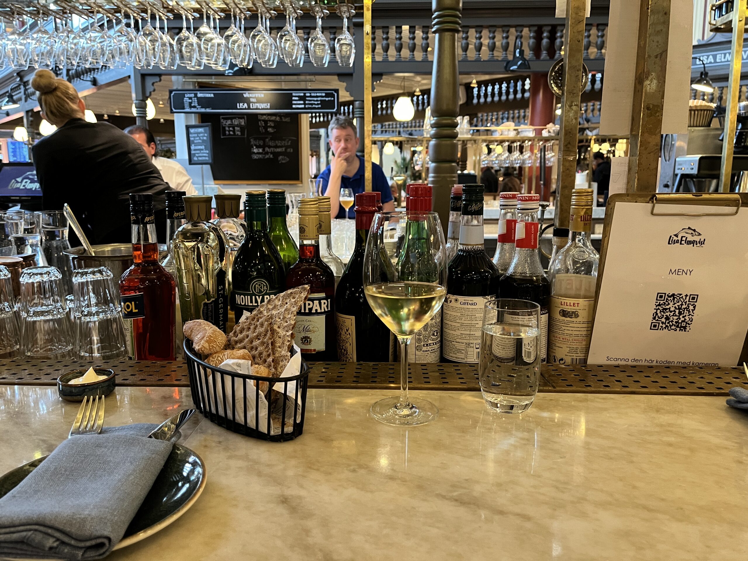 Ok, that’s the second one repeat in Stockholm. Since check-out is at 12:00 and check-in is at 2:00 PM, I had some time. I actually wanted to have some herring to finish off the meal. The best were at Lisa’s last time, so I set off (without a reservation). Saturday afternoon, I got a bit lucky and got a seat at the bar. A few minutes later, the line of people waiting for a seat grew quite quickly. However, this time I got a different menu, with a much wider selection and without the herring I actually wanted. But hey, since I actually wanted fish the first time and couldn’t find it on the menu, this time I had the whole ‘Long Flounder’ with almonds and chanterelles (okay, a few potatoes on the side). What can I say, it was very tasty (and a lot of it, too). Well-fed, I then went back to the hotel and took the train to the airport (to the next hotel).