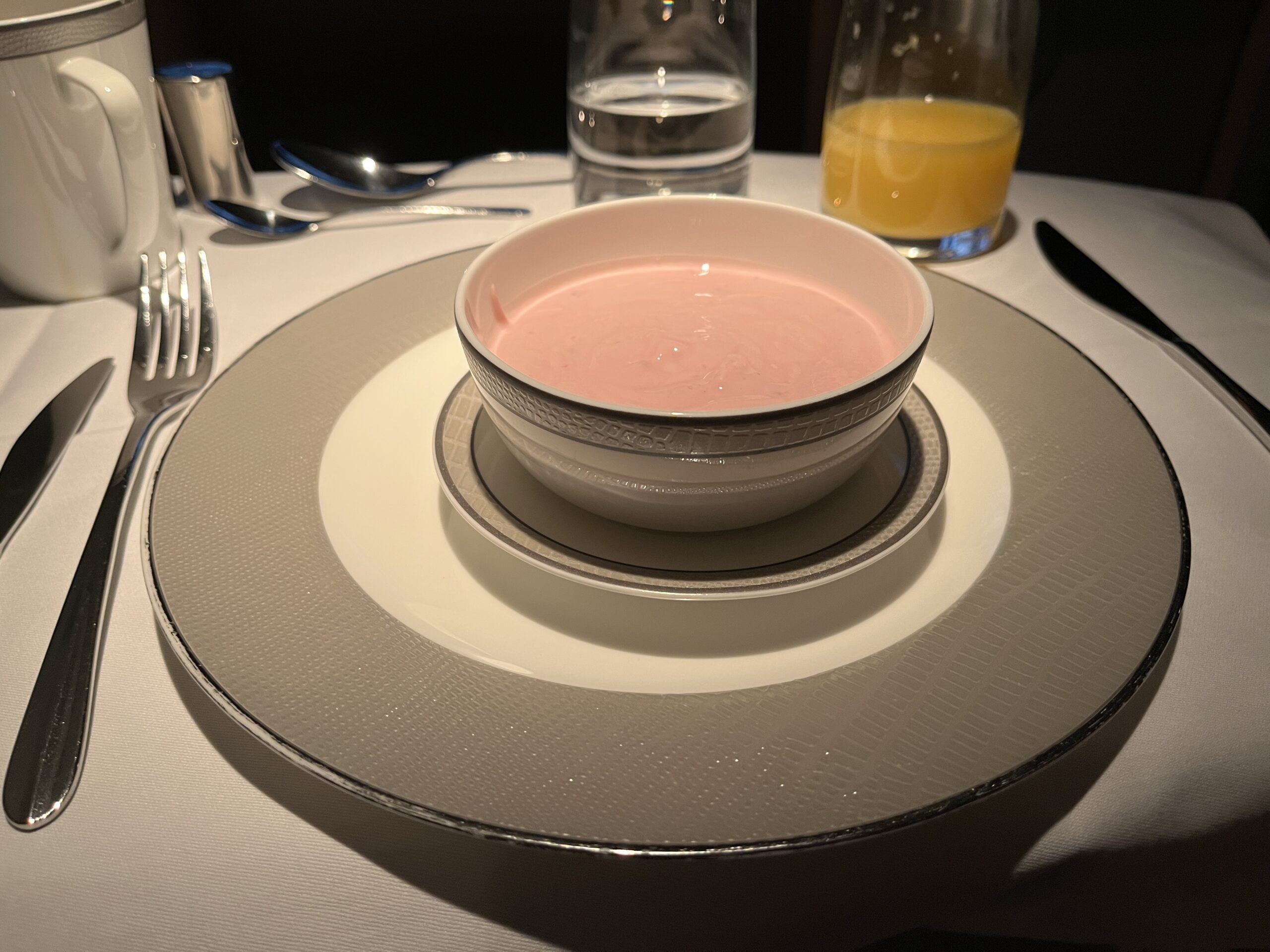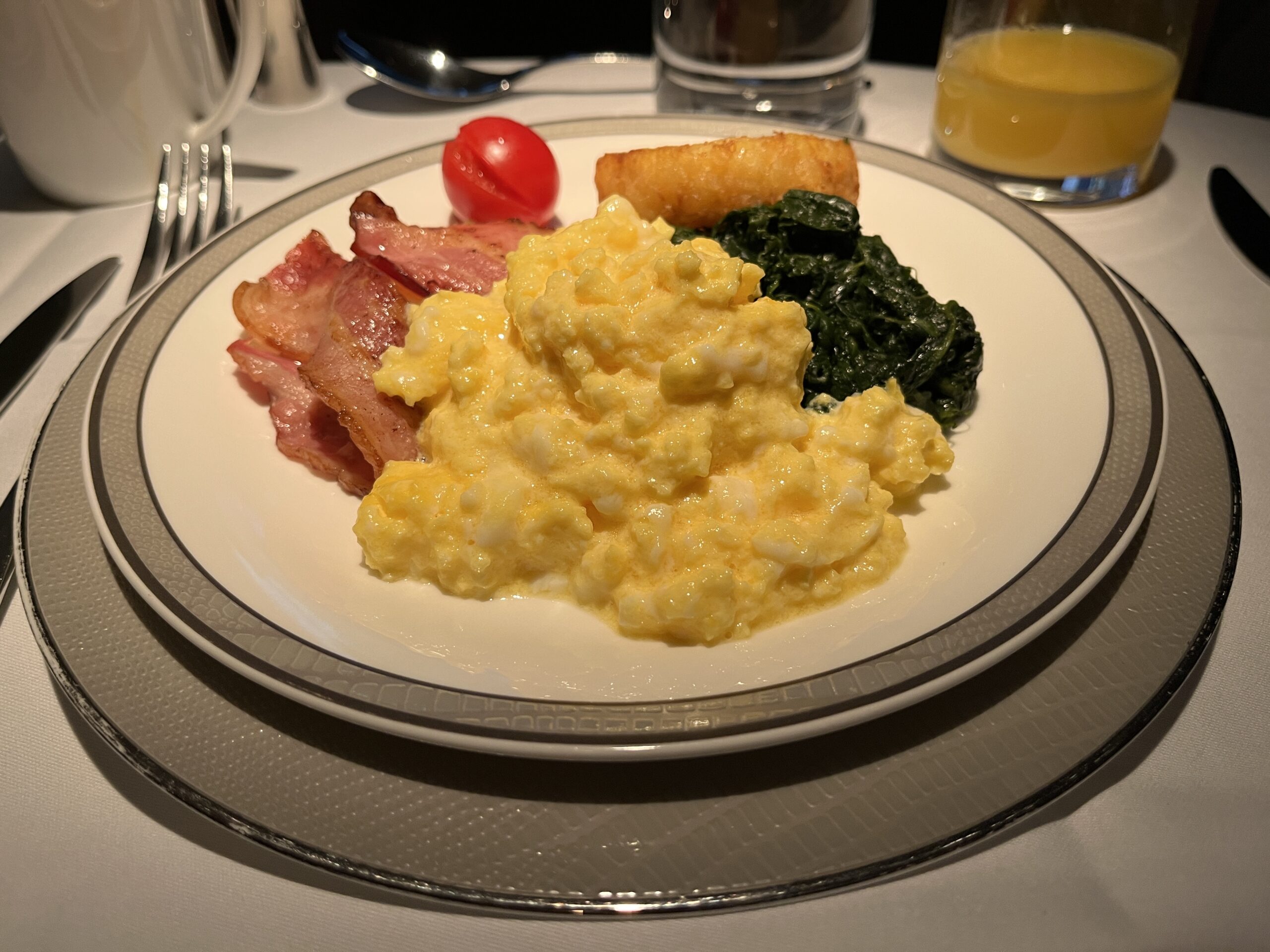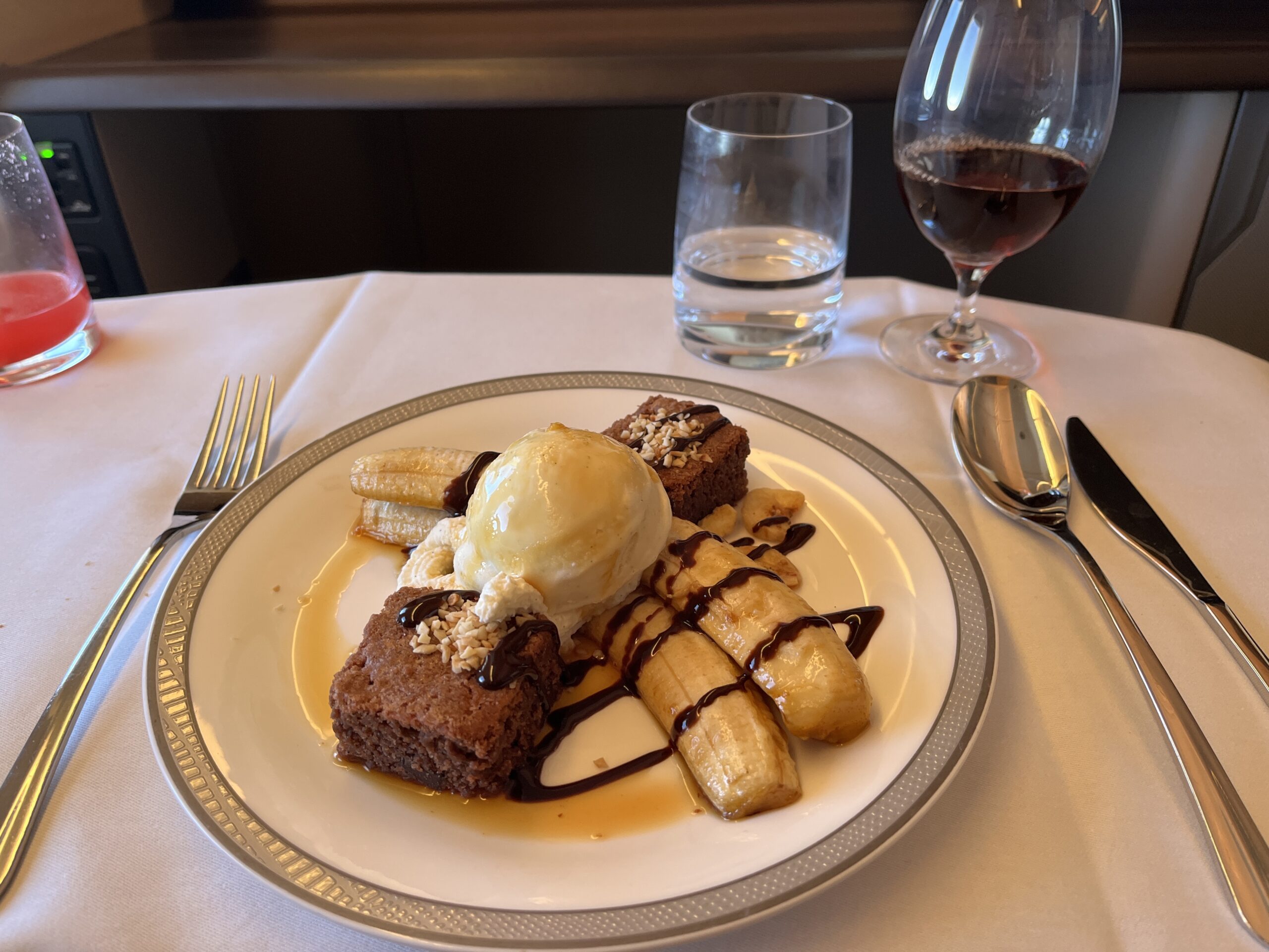 OK, we continued on with Singapore Airlines to Singapore, but this time in First Class ;). At the check-in counter, we were given another ticket, this time from Singapore (okay, the same ticket three times). On board, the usual question: Krug or Dom (and of course, I always go for Krug). Since the beginning of August, the mask requirement has also been lifted on Singapore (at least for guests). After boarding, service started pretty quickly. To start, there was a Singapore Sling and the Satte skewers with peanut sauce. Then you could choose from the extensive menu (both routes are already listed here). To start, there was Caviar, and the second appetizer was Lobster. For the main course, there was Thai curry, and for dessert, a banana split with ice cream. To help with digestion, I had a MacAllen. After that, my bed was made, and I had a good night’s sleep. I woke up three hours before landing and was asked what I wanted for breakfast. There was fruit, yogurt, and scrambled eggs with bacon. MatreeDeCabine then wrote me a few tips for Kuala Lumpur (he was from there).