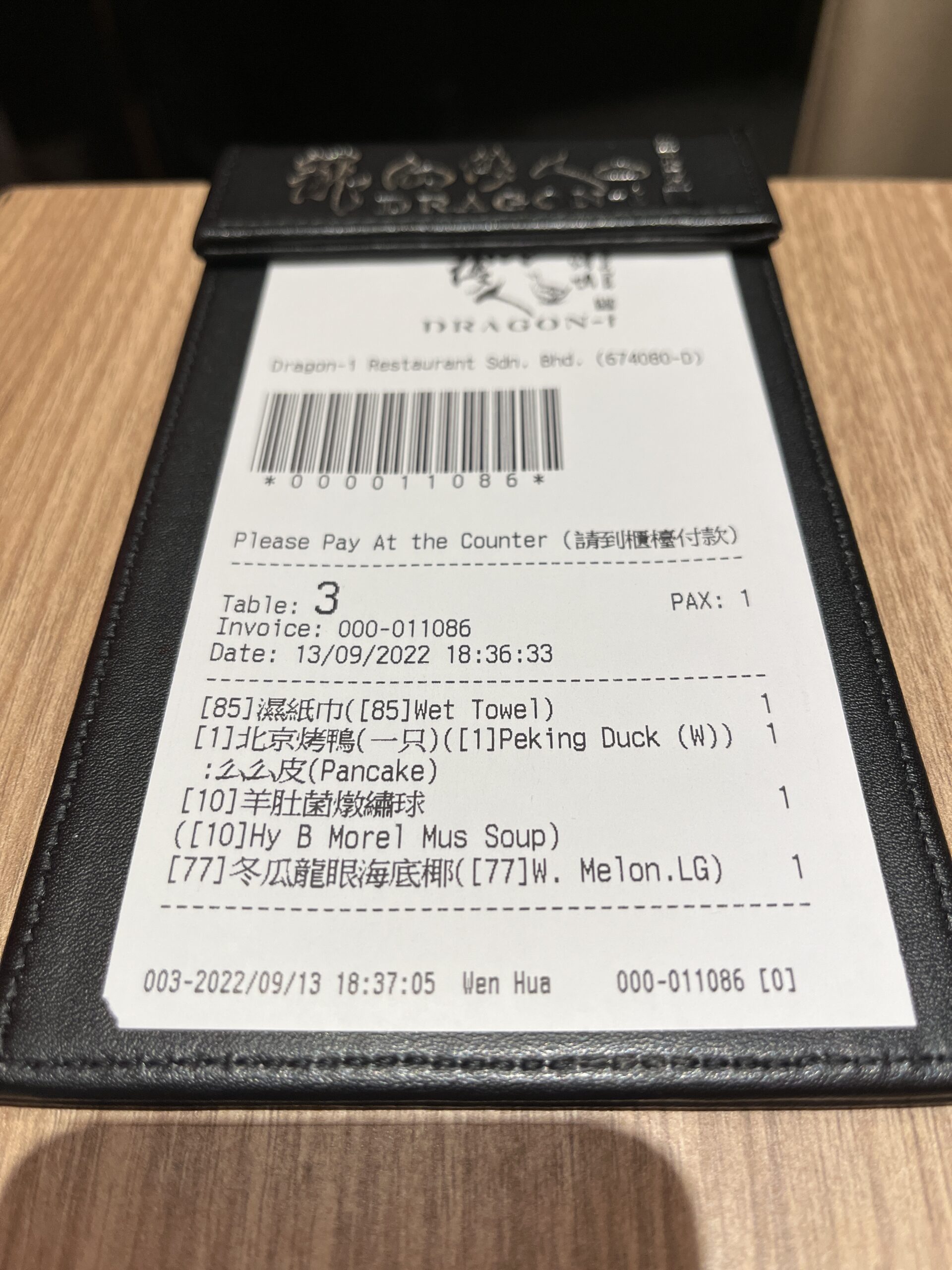 The Dragon is also quite close to the hotel (I still haven’t had much time to explore the area). The restaurant is on Level 0 in the Pavilion shopping center. Since it’s been ages since I had Peking duck, I went with that (even though it’s probably meant for two). They also served a special soup where the chef can demonstrate his knife skills ;). The Peking duck was very good and was cut up at the table (although that also creates a lot of waste). So you can eat it alone :D. The soup was also very tasty. The tea with lots of ingredients (lychee, etc.) was also very good.