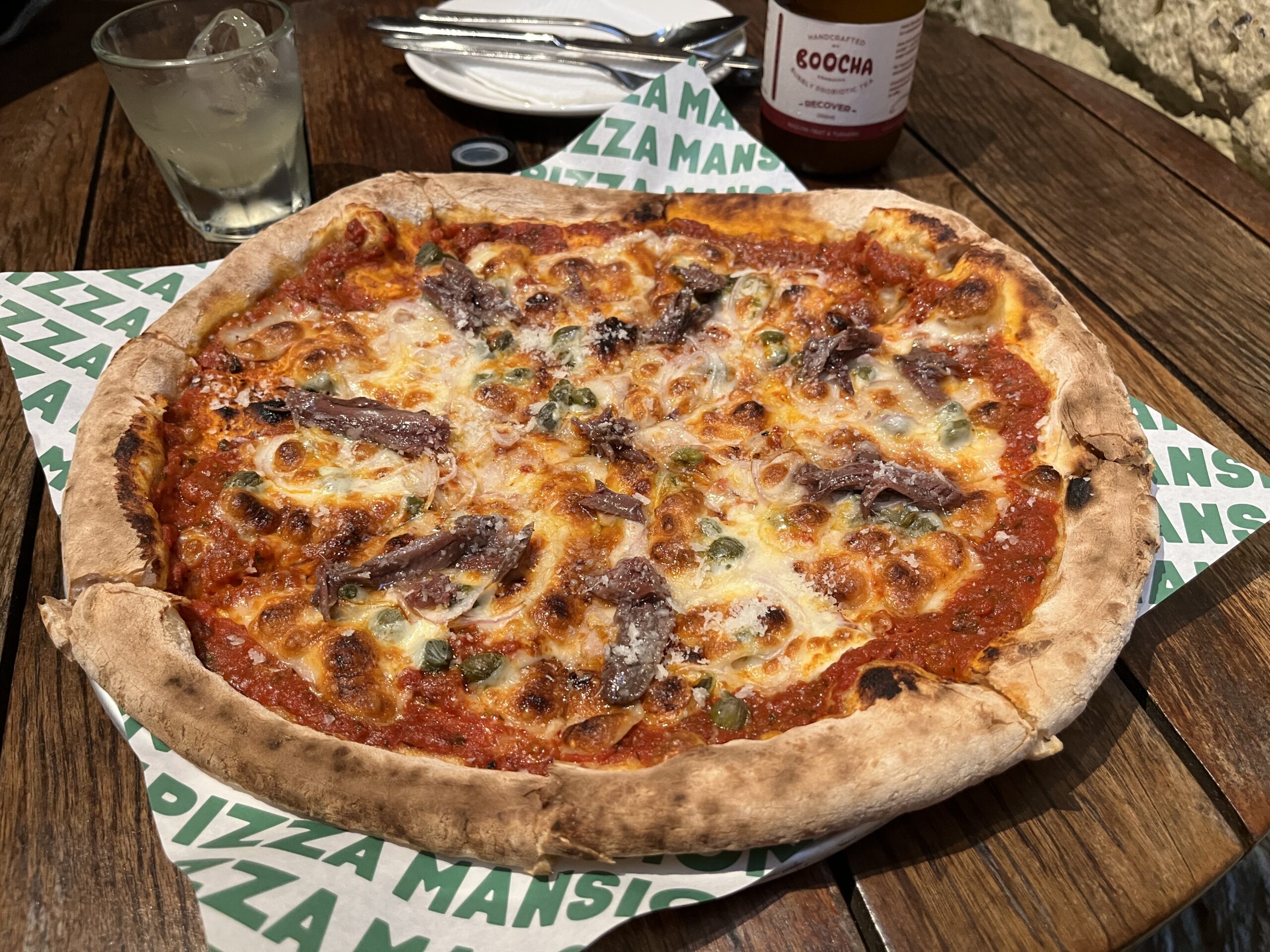 Okay, no visit is complete without trying a pizza. The Mansion was my choice (the pictures and reviews on Google led me to this choice). What can I say? A wood-fired oven, good dough, and not overly over-the-top toppings (okay, the onion wouldn’t have been necessary on a marinara). All in all, pretty good. Funny thing is, they had more kombucha varieties to choose from than other drinks ;). The only thing I found a bit annoying was the location in the aisle. Okay, it’s the only place where they have tables for two, but it just feels like a dumping ground.