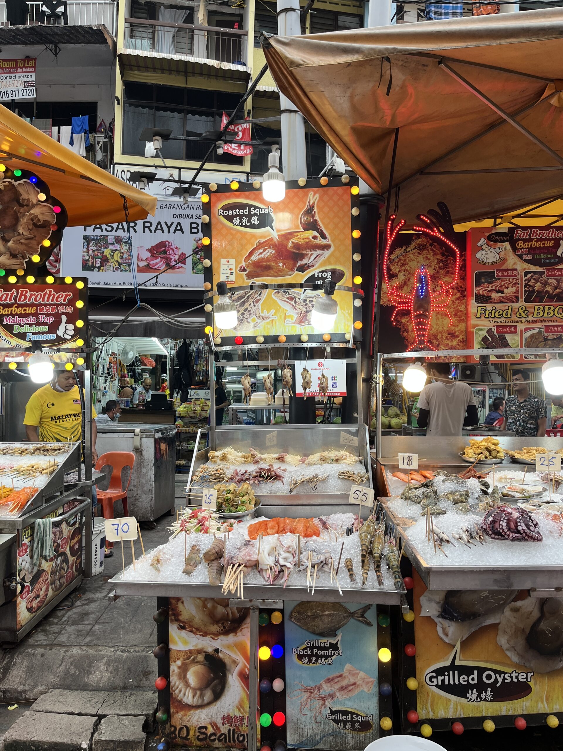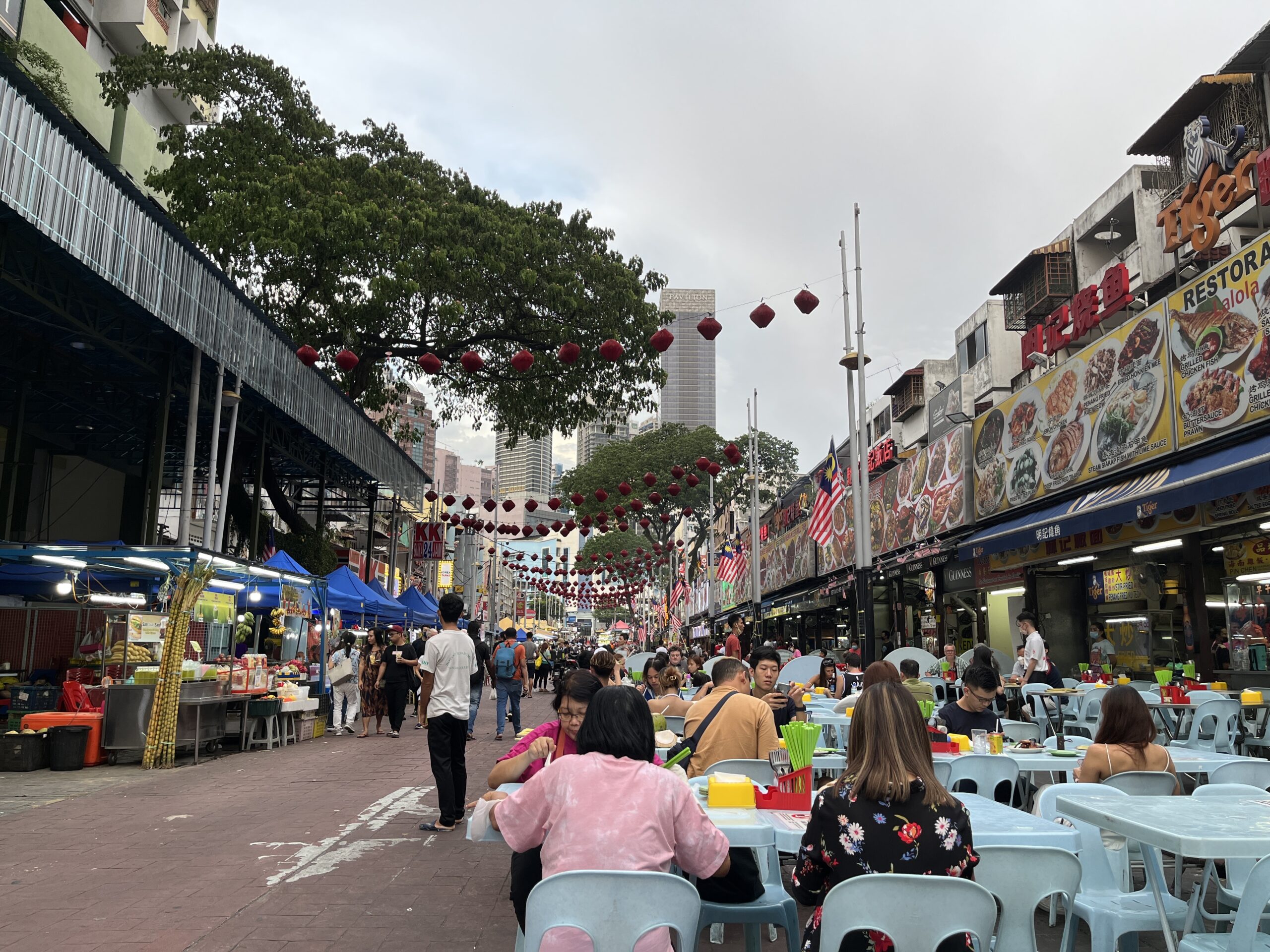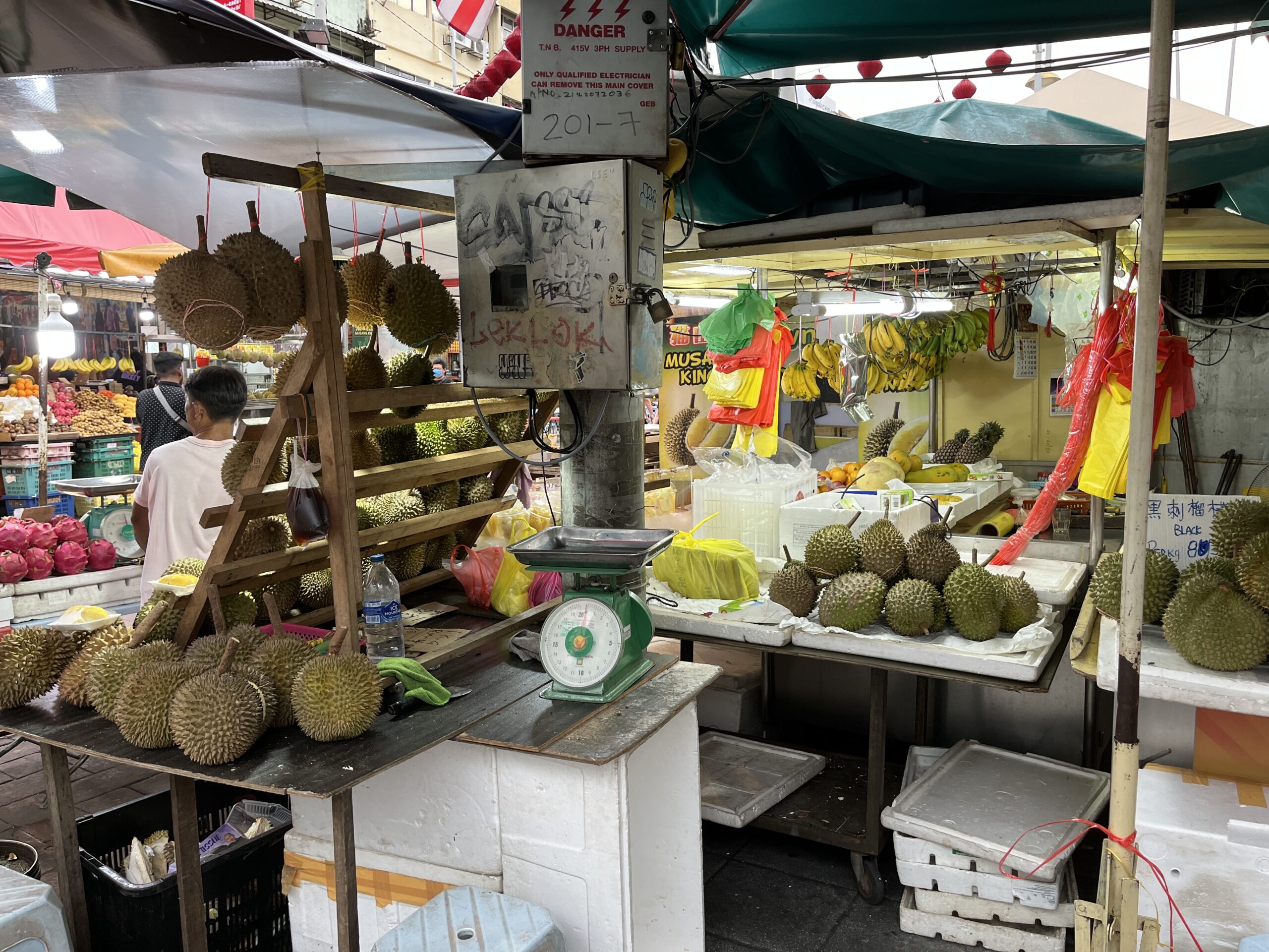 I received a recommendation for the Jalon Alor Night Market. There are so many shops here, it was difficult to choose. Since I wanted to try the stingray, I opted for the Meng Kee. It wasn’t a bad choice. The stingray was very juicy, flavorful, and light on the bite. I ordered the spicy Morning Glory. It was spicy, but somehow not quite as good as I’m used to in Bangkok (maybe because it was a bit thickened). I had the durian on the way back; it was also very tasty (a different variety for a change). I’ll definitely visit the night market again; there are a few more interesting shops there.