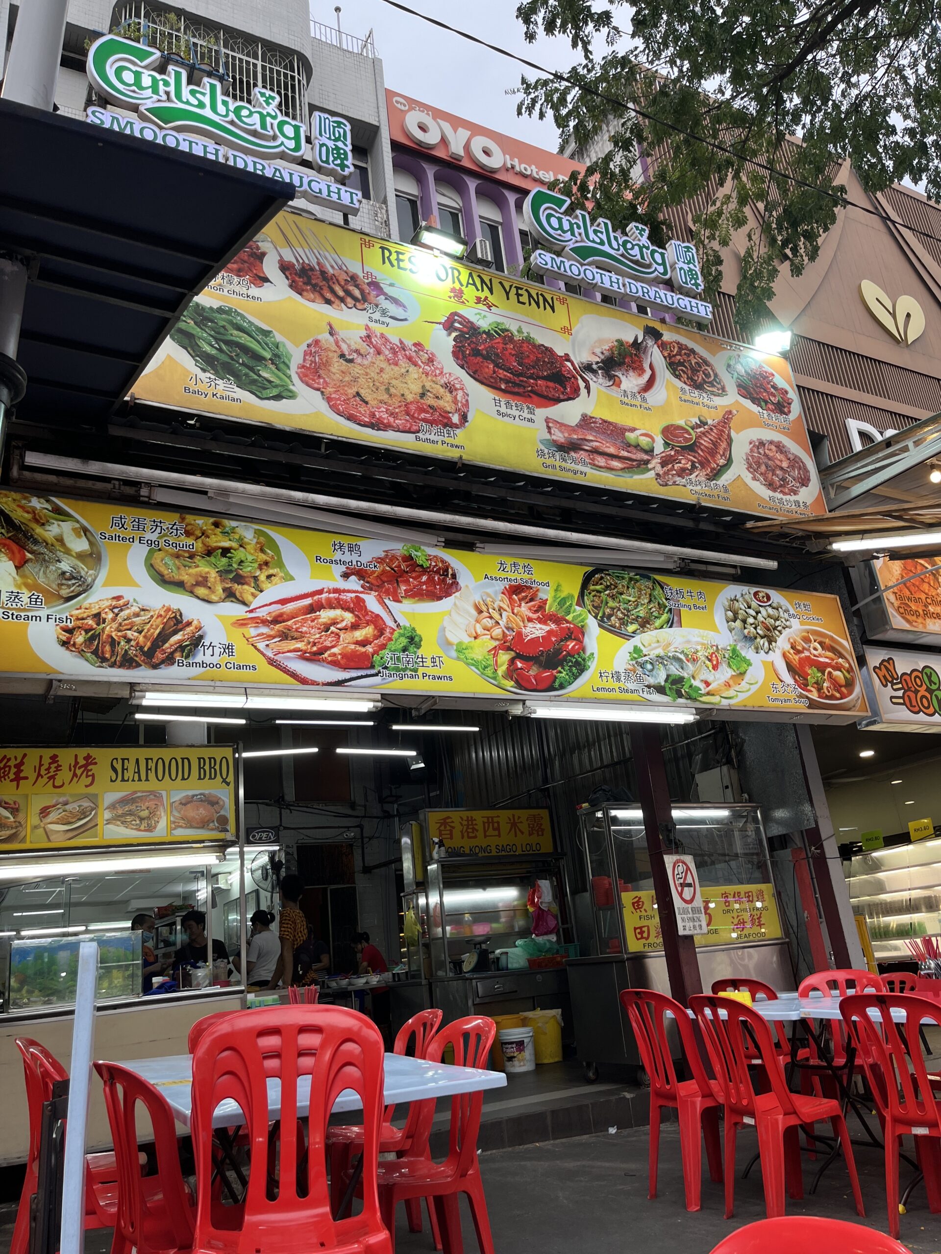 Another test at the night market. I’d actually planned to try a different restaurant, but it was closed that day. So I studied a few menus and decided on Yenn. I had the BBQ fish and the cabbage again. The fish itself was juicy but a bit bland, and the sauce wasn’t really that good (they do better in Thailand). The cabbage was downright boring after the last one (the little dried crab didn’t add much, and it wasn’t spicy either). Okay, it wasn’t a total flop, but definitely not worth repeating.