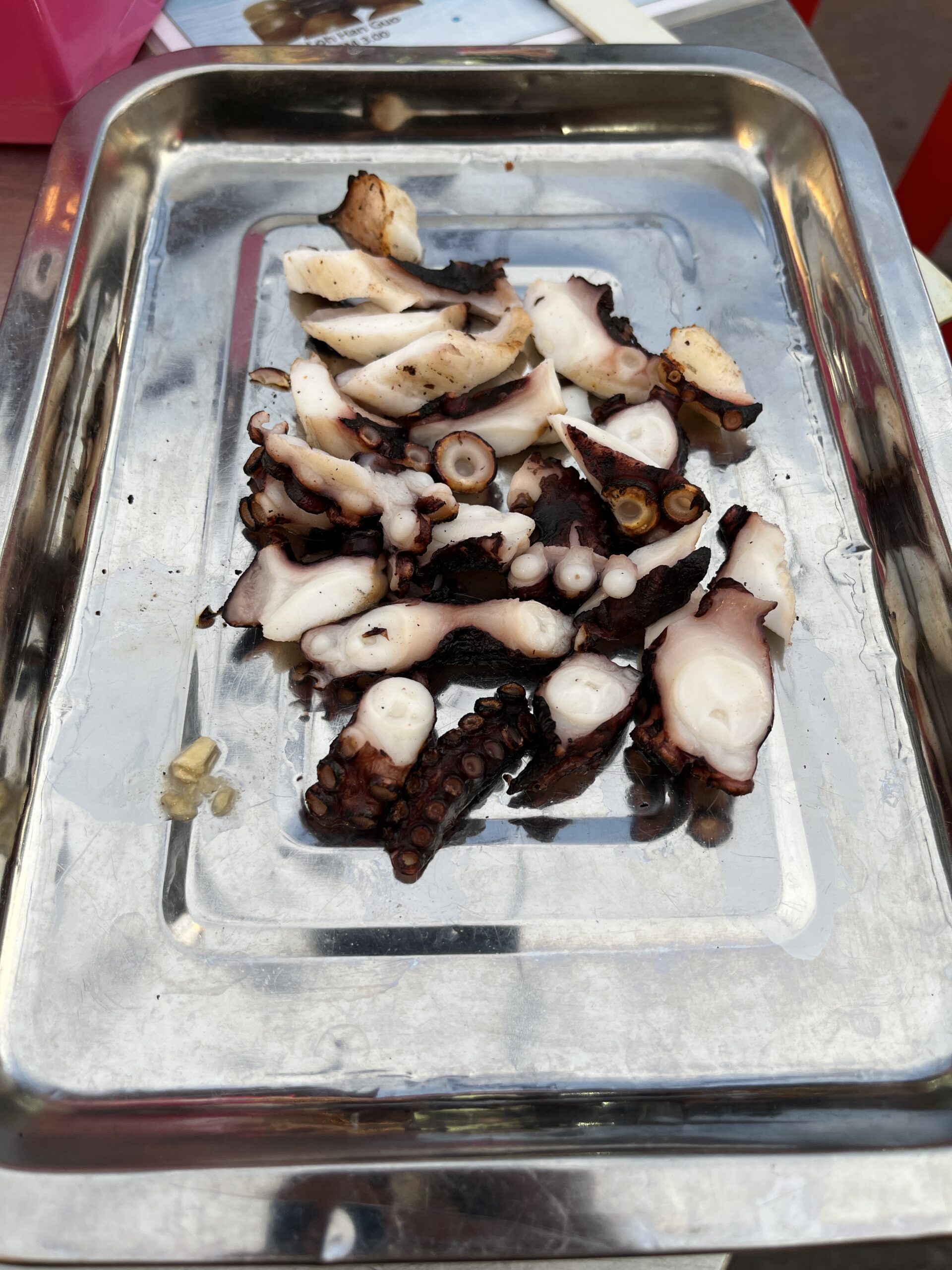Somehow the selection appealed to me, especially the octopus (it was really good at the tapas bar). So I gave it a try. I should have left, though, when the vendor tried to sell me a sweetwater shrimp as a special lobster (which was supposedly particularly cheap, which isn’t exactly obvious when you consider it a special). Okay, I also chose mussels, crocodile, mushrooms, and eggplant. Unfortunately, the octopus was dismembered beyond recognition and tough as leather. The scallops were hidden under a thick layer of garlic. The mushrooms were fried to death; they should have been grilled. The eggplant and crocodile were okay. The ‘lobster’ was actually pretty good, but it didn’t really cut it.