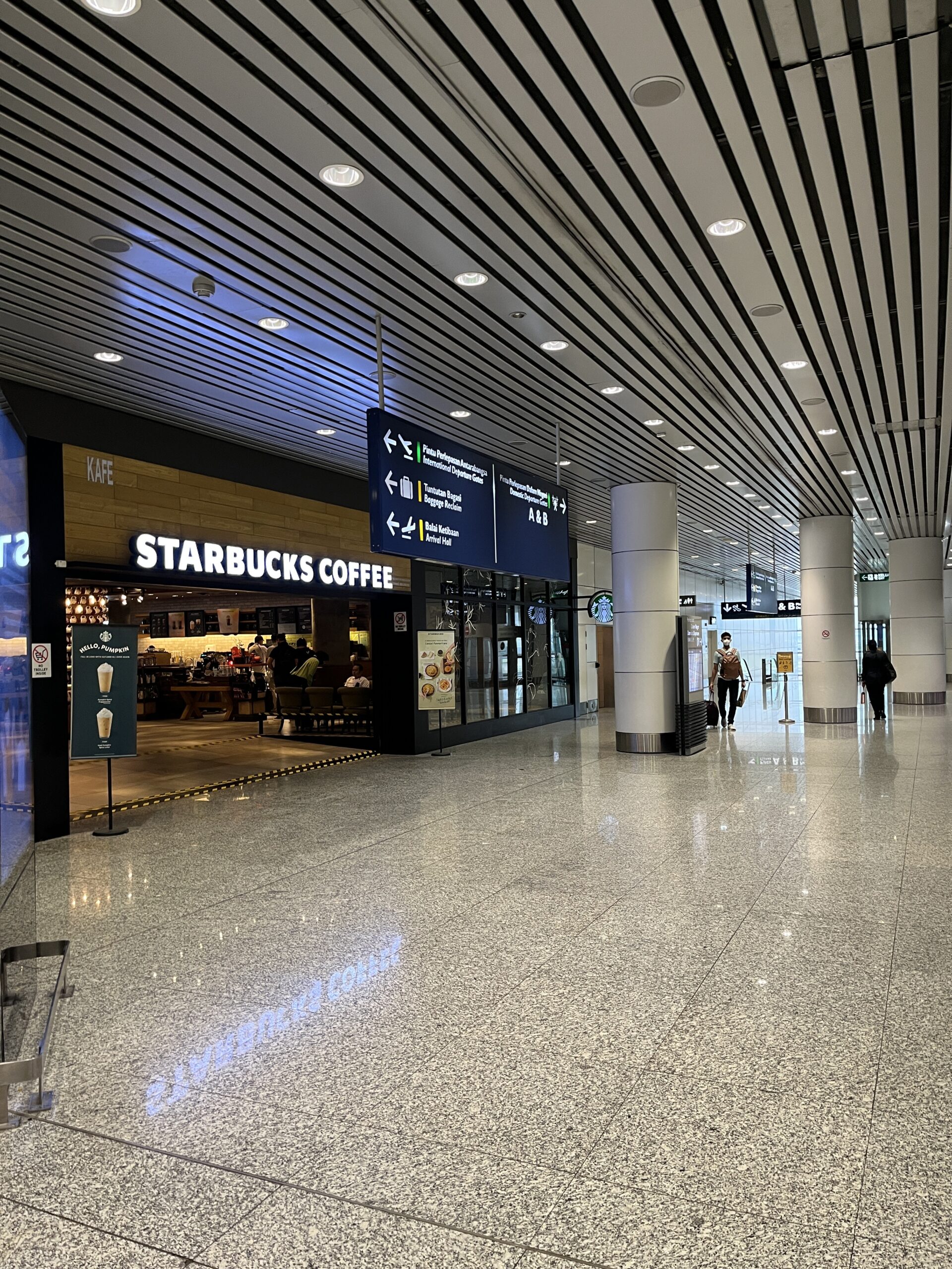 KUL Airport doesn’t offer much to report. Other than that everything moves very quickly. I was surprised at the first security check that I didn’t have to unpack anything. But it’s also like in Singapore; the actual security check takes place right at the gate. So there are no long lines. Unfortunately, there’s no Star Alliance lounge (only a Oneworld one), so I went to a Starbucks as a lounge substitute for the first time in a long time (but that wasn’t really a highlight either).