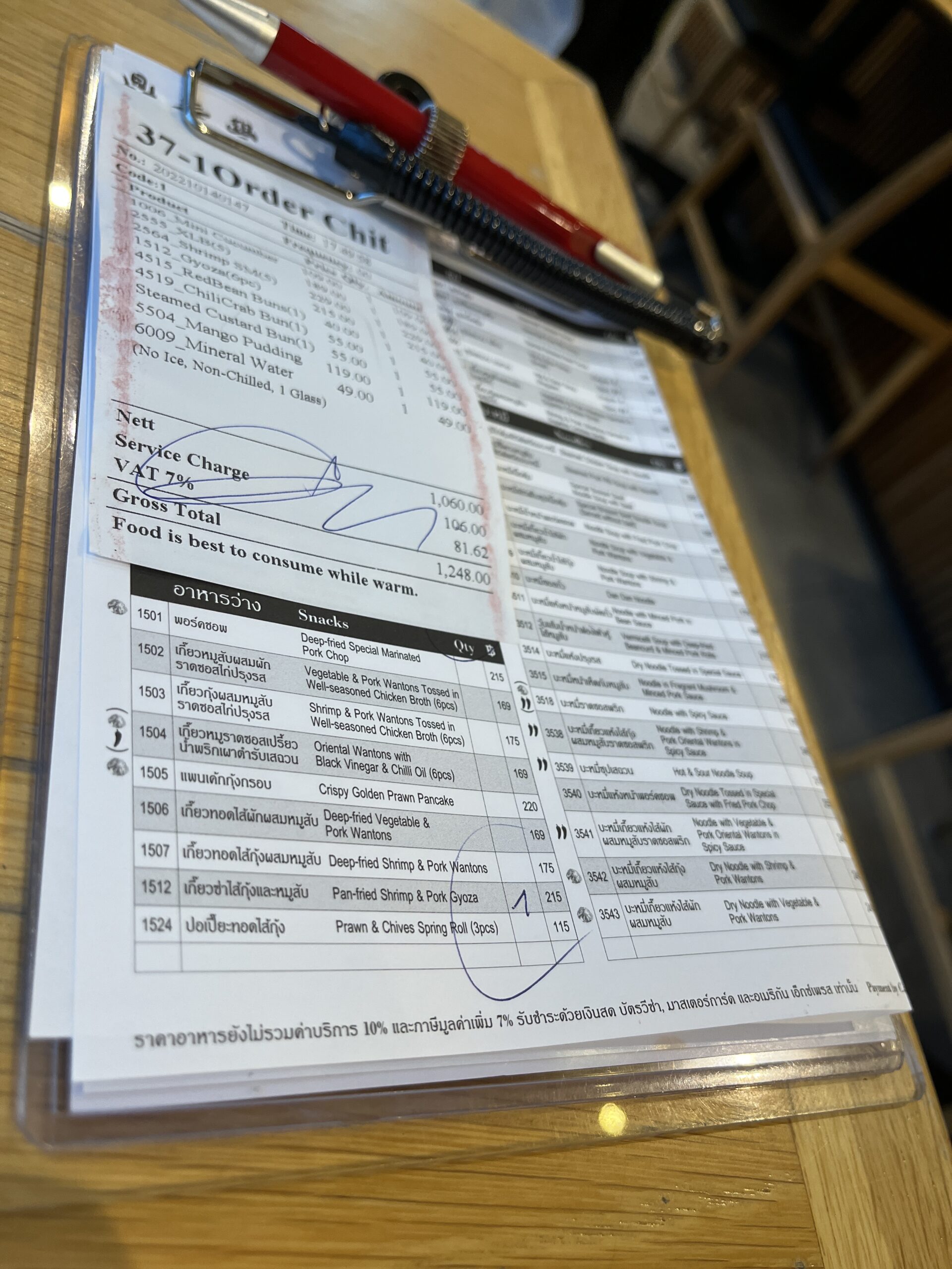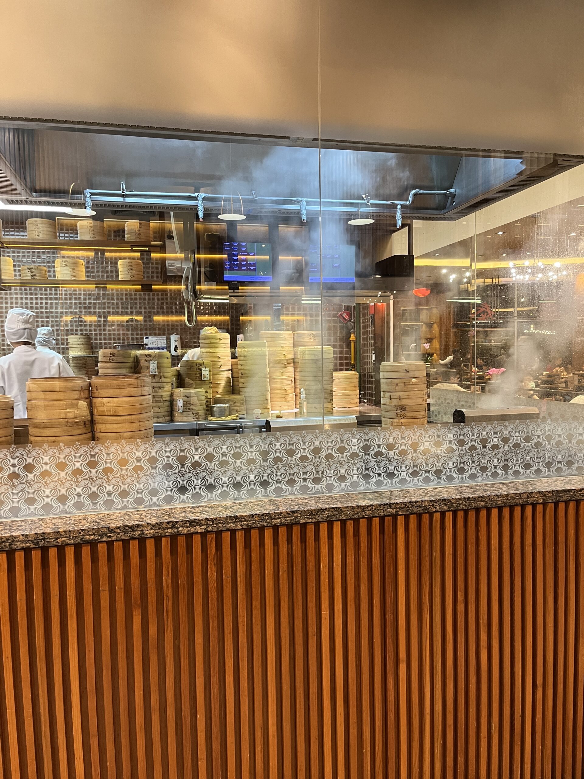 Since a longer stay in BKK usually includes a visit to Din Tai Fung, I did this time too. I deviated slightly from the ordering pattern this time, as the custard buns at KL Din Tai Fung were so good. So this time I ordered three variations of steamed buns: custard again, then spicy pork, and red beans. Except for the spicy pork, the other two are more of a dessert. If you want really good gyoza in BKK, you should definitely stop by here. Din Tai Fung (no matter where in the world) is probably the best-organized restaurant. Everything is superbly coordinated, and everyone has a headset (radio). All dishes are meticulously worked through and signed off. I find the xiao long bao better here than in KL (the dough is thicker there), as is the mango pudding, which was much too solid in KL.