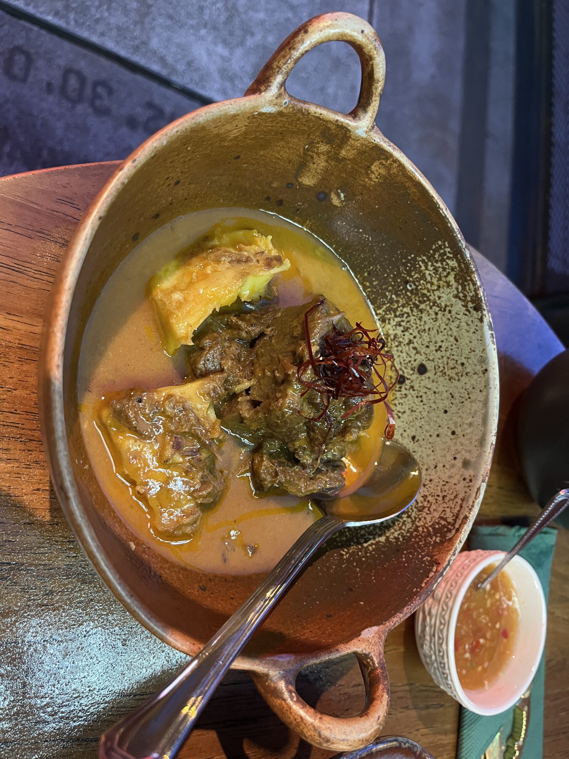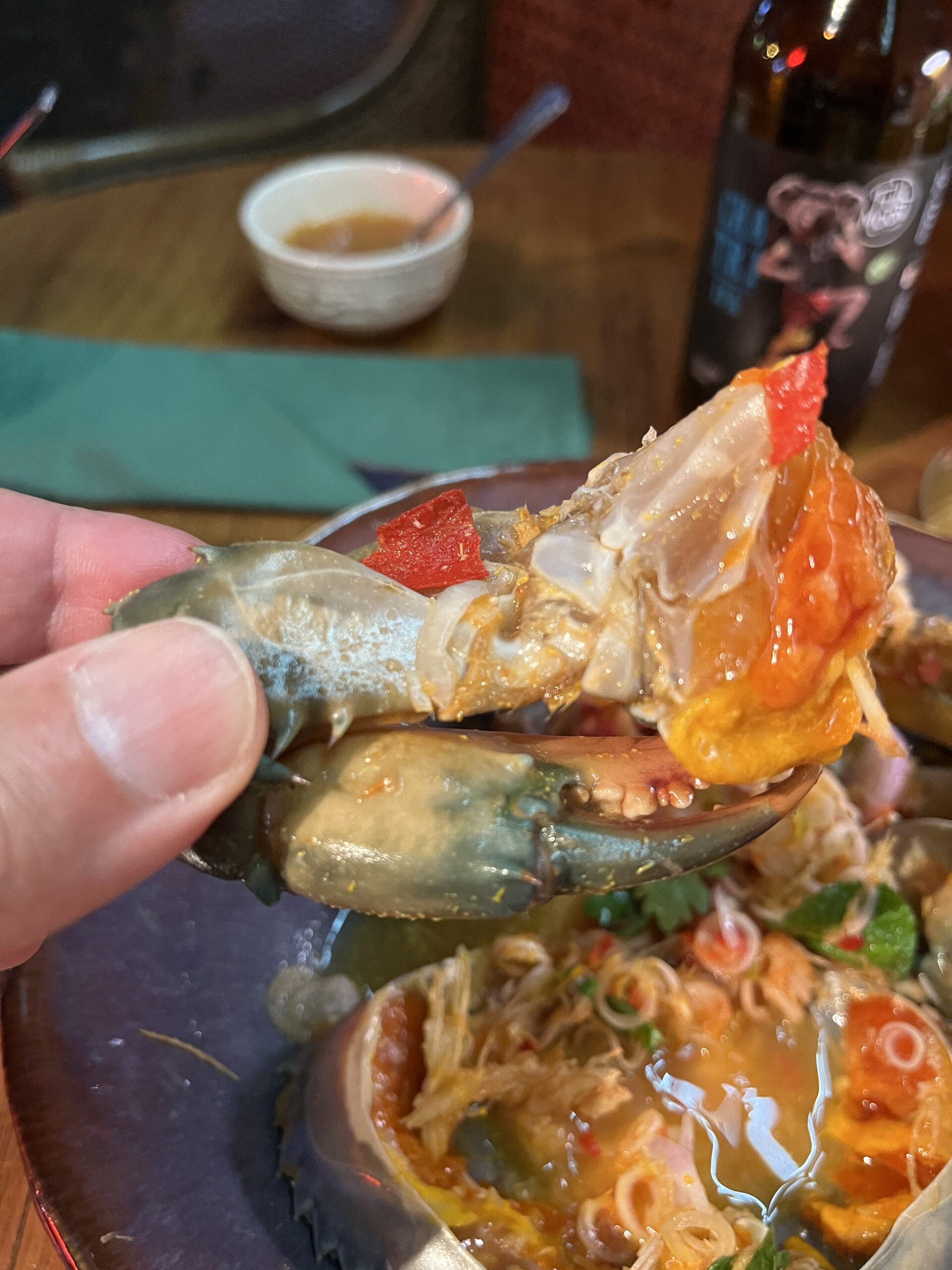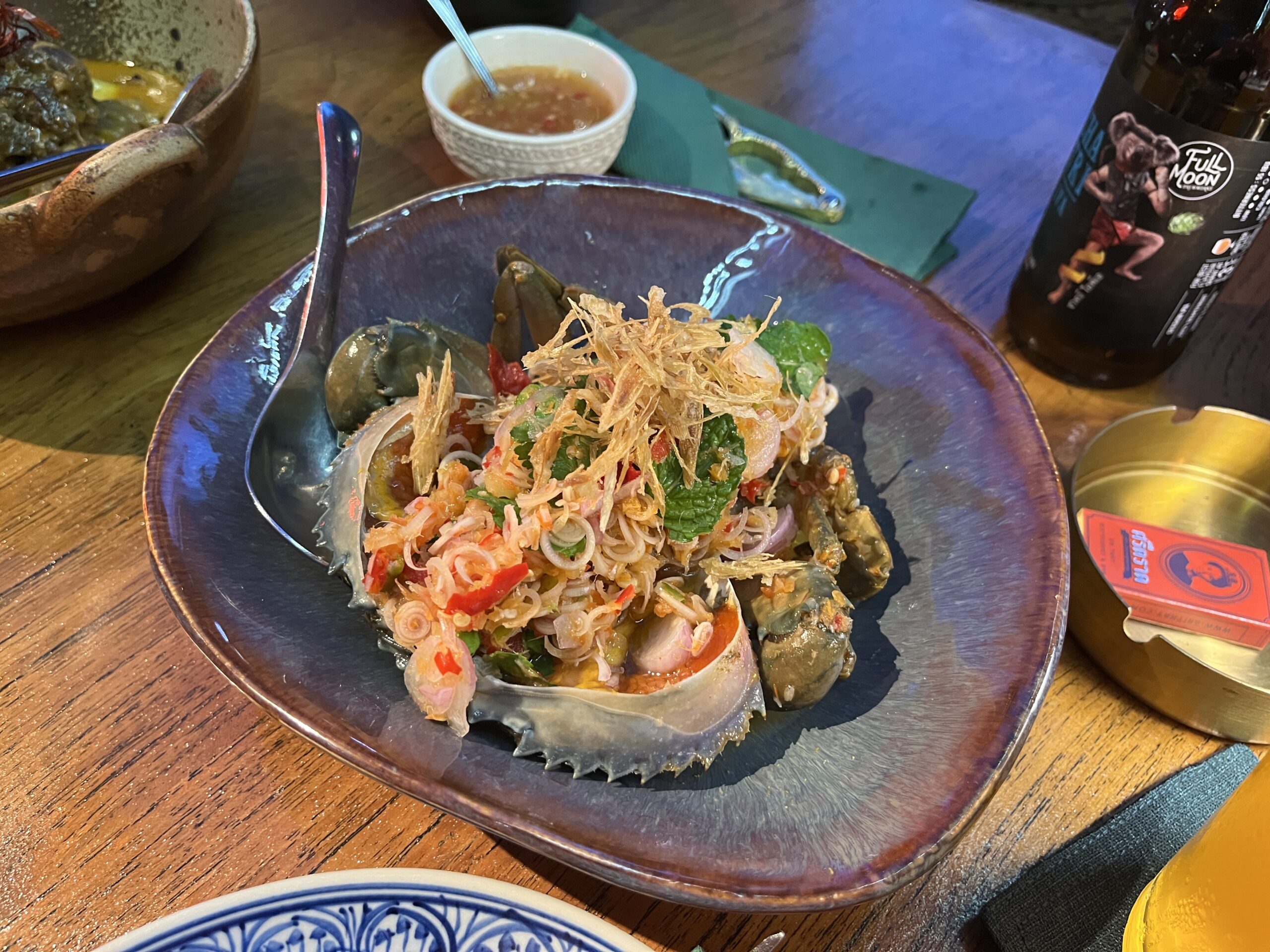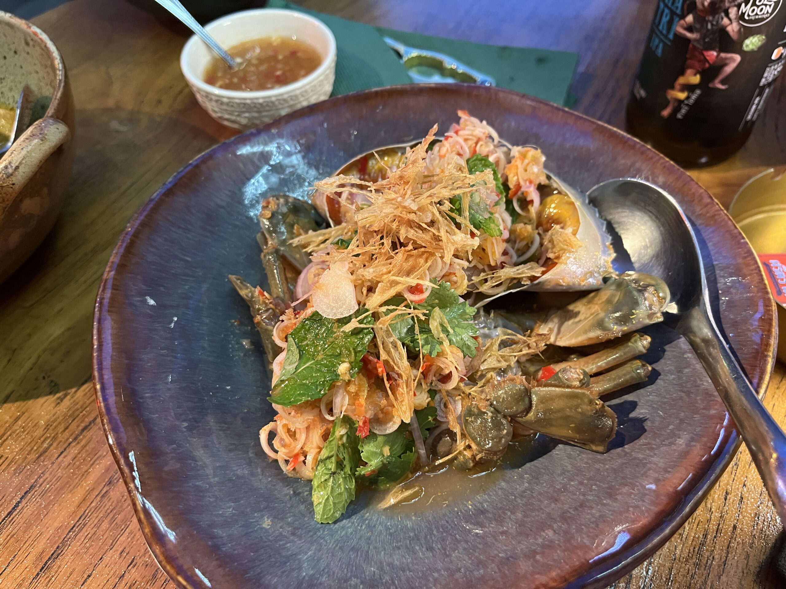 OK, I don’t usually write an entry for every repeat meal, but this time I had to. I didn’t really want to try anything new (okay, there aren’t that many new things anymore). But when I ordered the shrimp ceviche I was told that they currently have a crab version. So of course I ordered it. Afterwards I got cold feet for a moment because I’d already had raw crab at Central Embassy and it wasn’t my favorite. But this was completely different. The flavor was an absolute explosion in the mouth, be it the meat or the roe (which was particularly tasty), absolutely top notch. This time I sat outside though because I’m always cold inside.