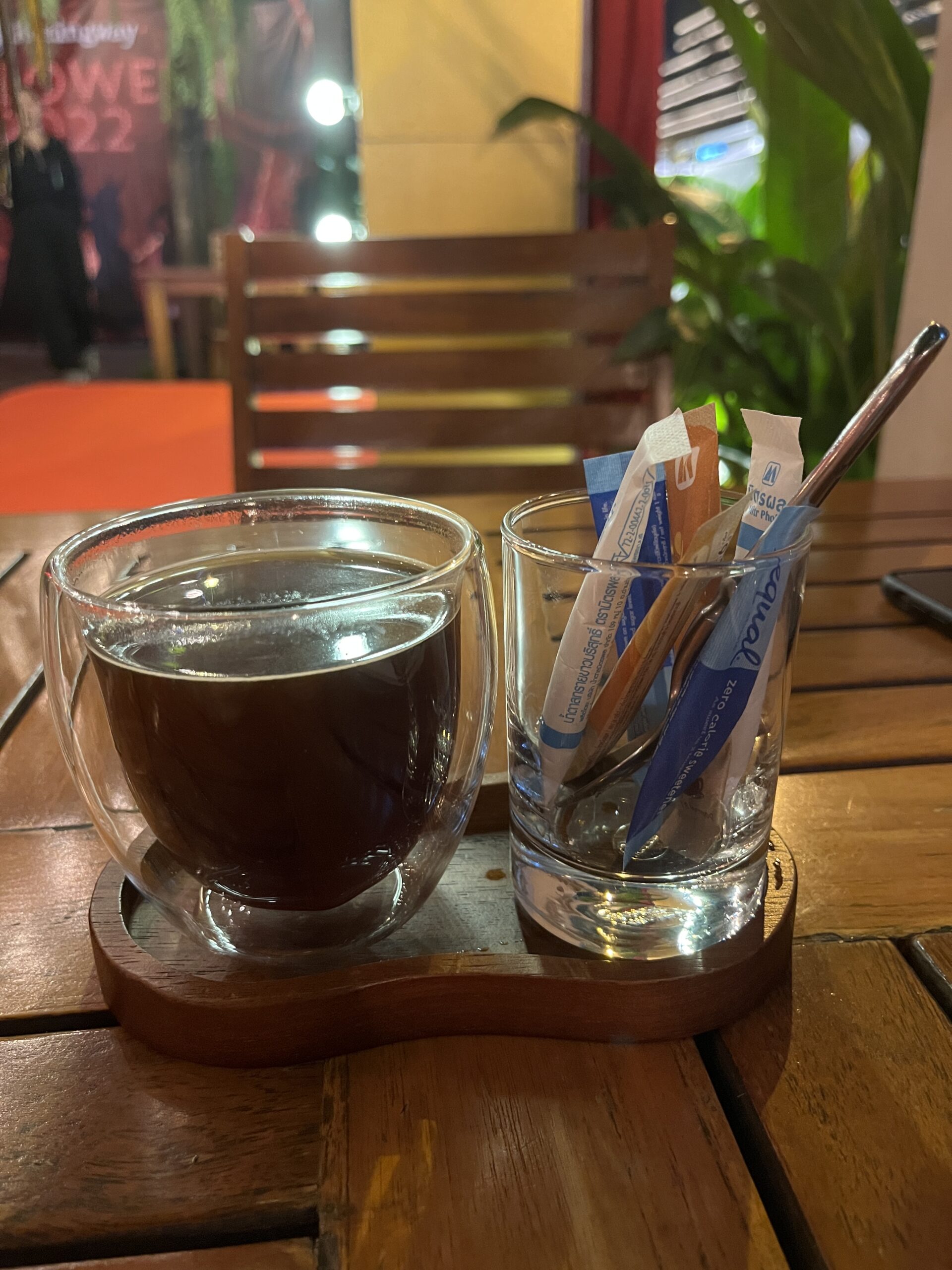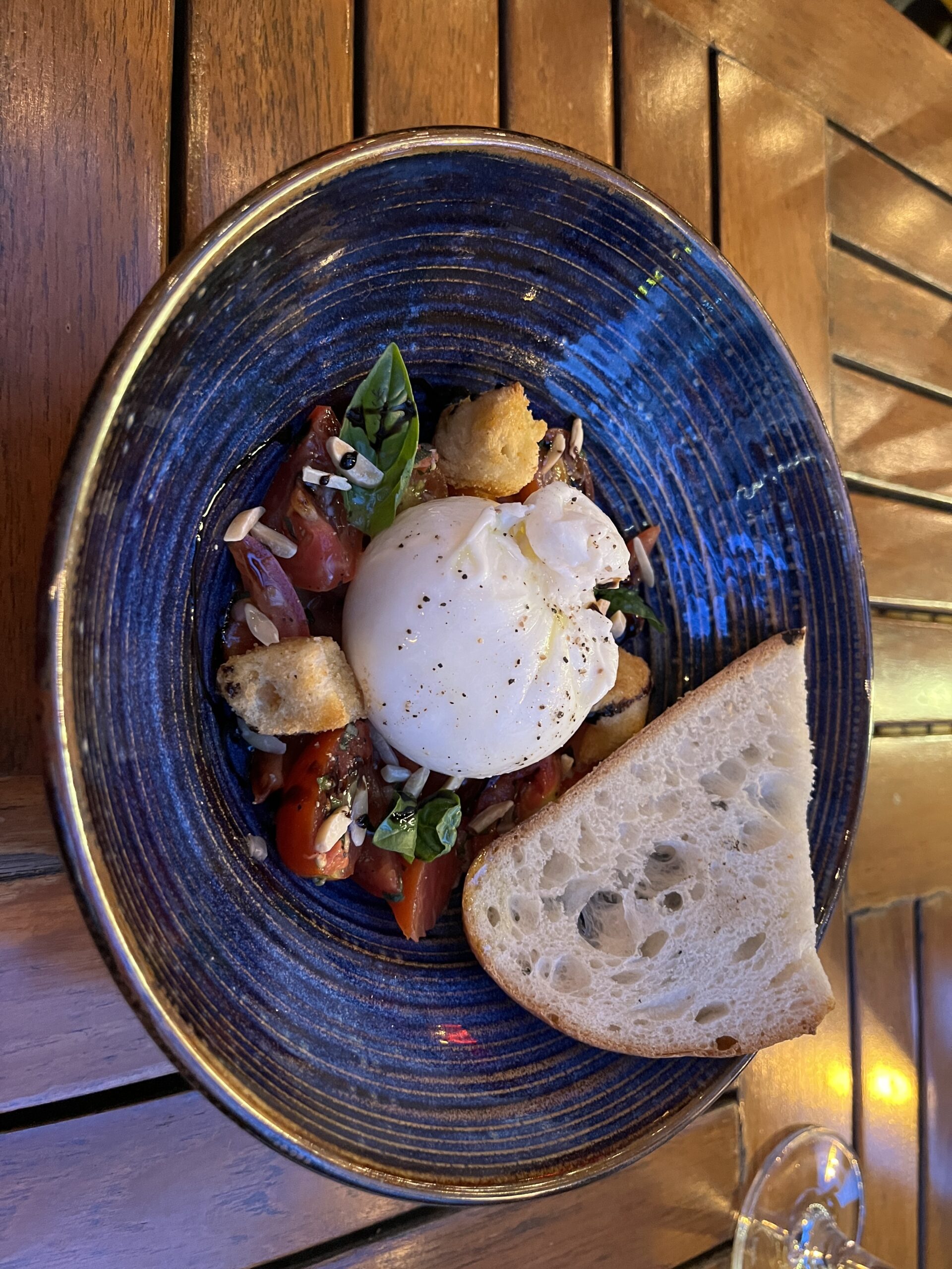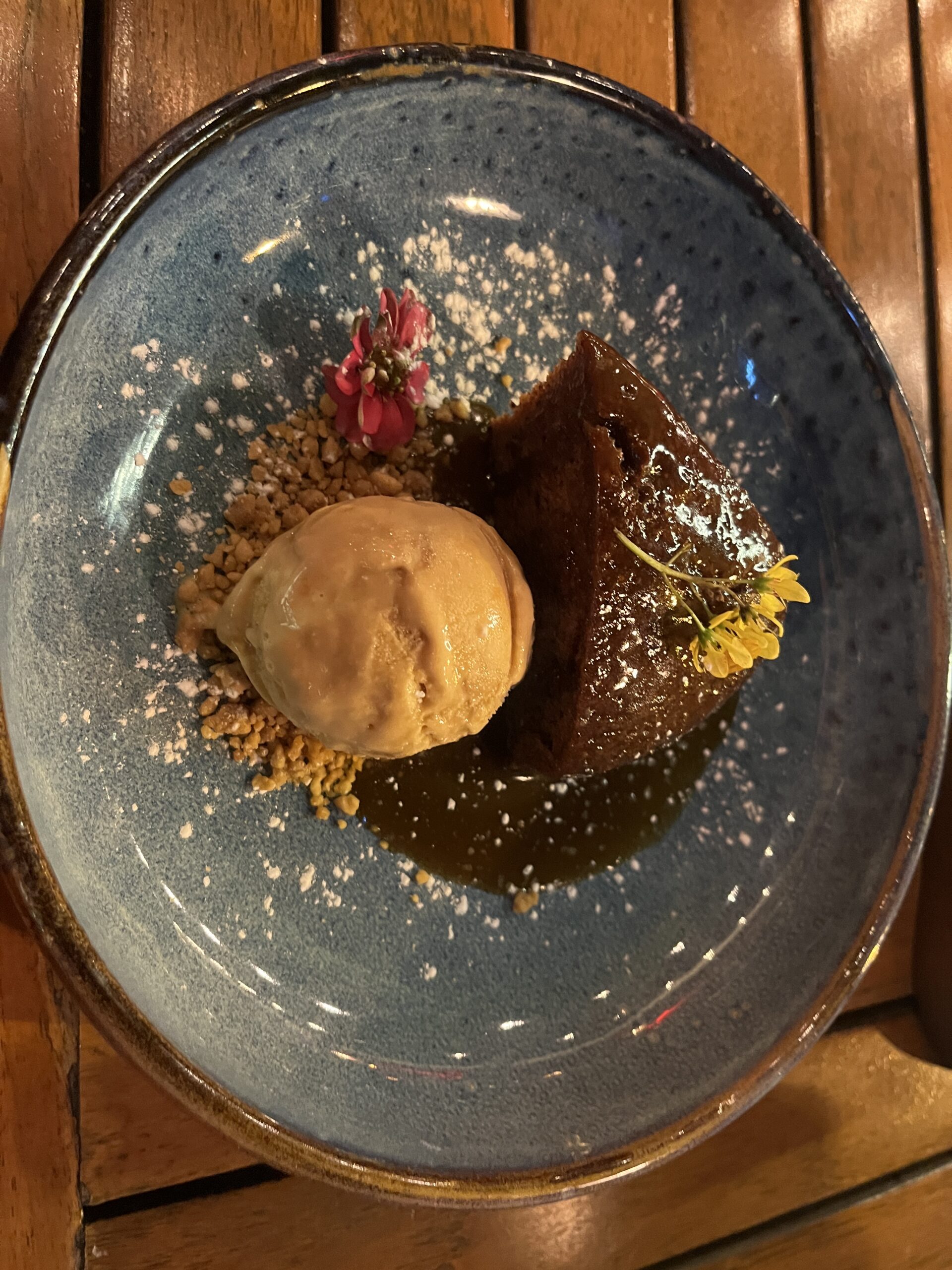 This time it was time for something new again: Hemingway’s. The restaurant is practically in front of the Mercury Hotel, so it would also be a good rainy option ;). The restaurant has two floors and a fairly large outdoor area. The interior isn’t really air-conditioned, as the front is completely open to the outside. I ordered burrata, lamb shank, and another pudding with ice cream. The burrata with tomatoes lacked a bit of creaminess (but it was still good). The lamb shank was great (low and slow); the meat just fell apart. The whole thing was served on mashed potatoes and spinach (you can’t really tell from the pictures). Dessert was also delicious (although I preferred the cheesecake, which was unfortunately sold out). They also had the house wine (recommendation, since it was happy hour). All in all, very good and perfect if you’re in the mood for something more local.