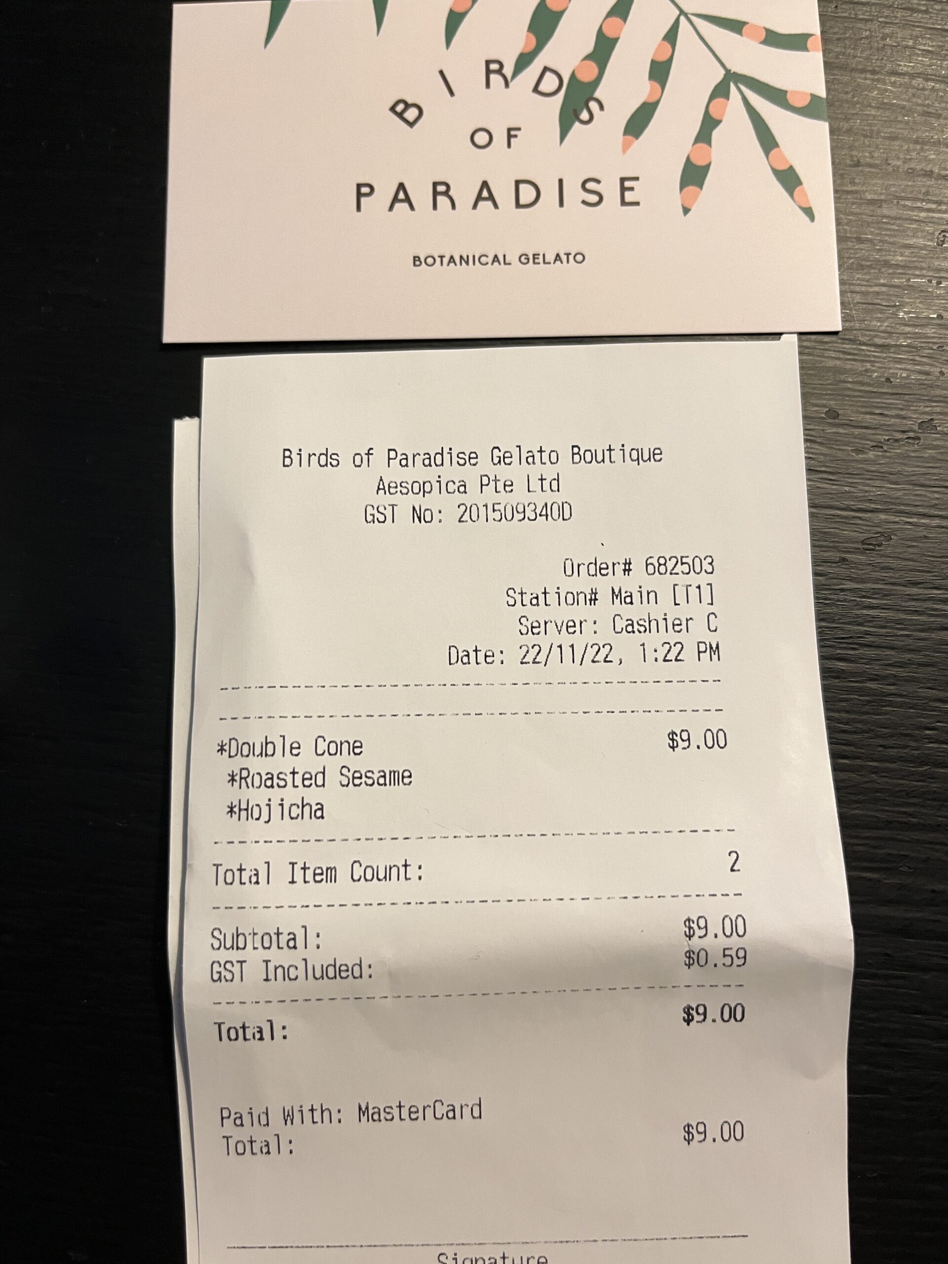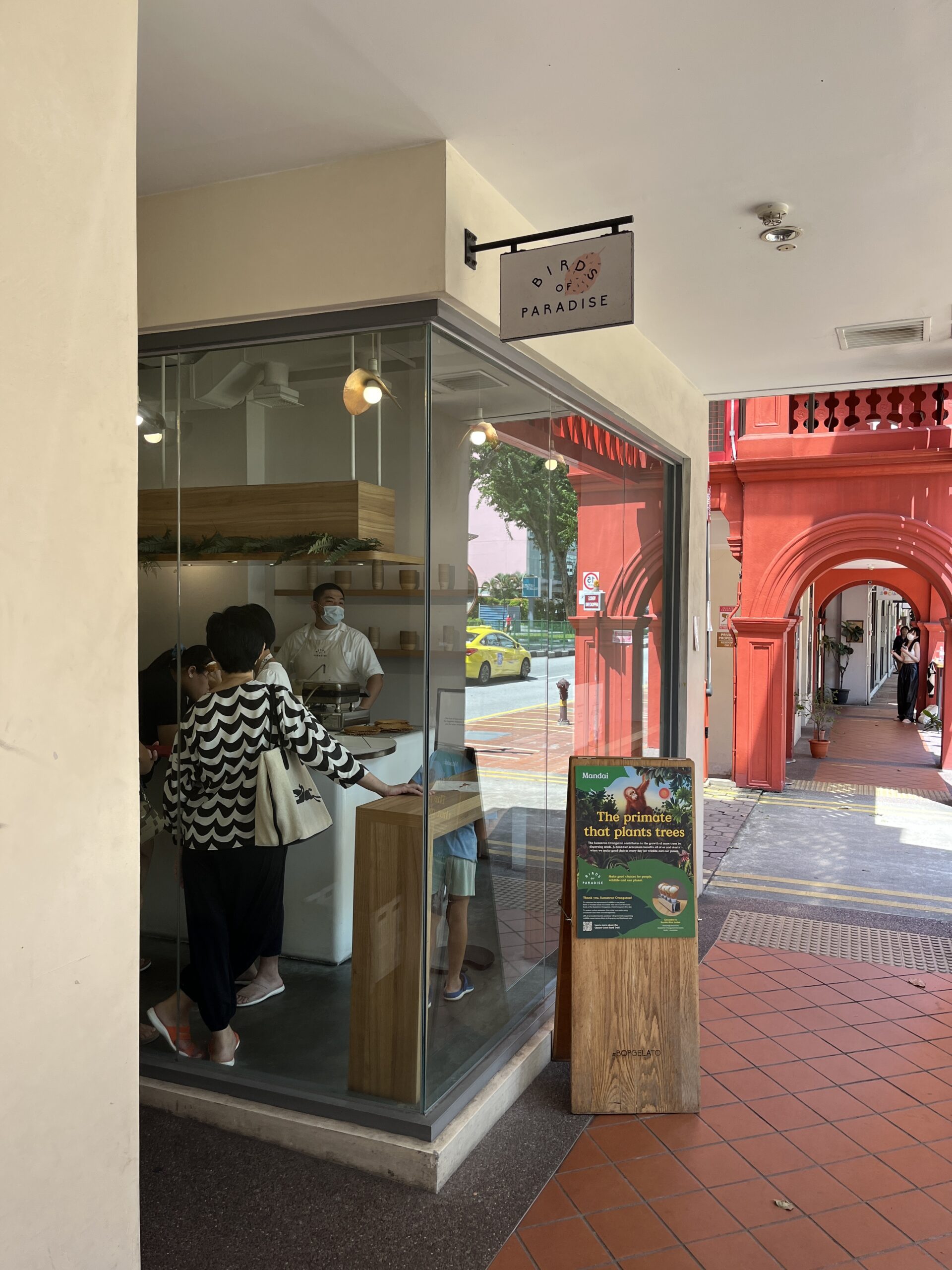 Since I don’t start work in Singapore until 3:00 PM local time, I have a bit more time to walk around and see what’s available. I passed by an ice cream parlor where someone was baking ice cream cones. I thought, let’s try the ice cream and the cone :D. The ice cream selection is quite large, and there are many interesting flavors/blends. I opted for the roasted black sesame and green tea (hojicha) with salt, in a cone. The ice cream was delicious, and you immediately understand why most people eat their ice cream at the ice cream parlor (when it’s over 30 degrees outside, the ice cream melts pretty quickly). So, I might repeat this, because there are a few more flavors to try 😉