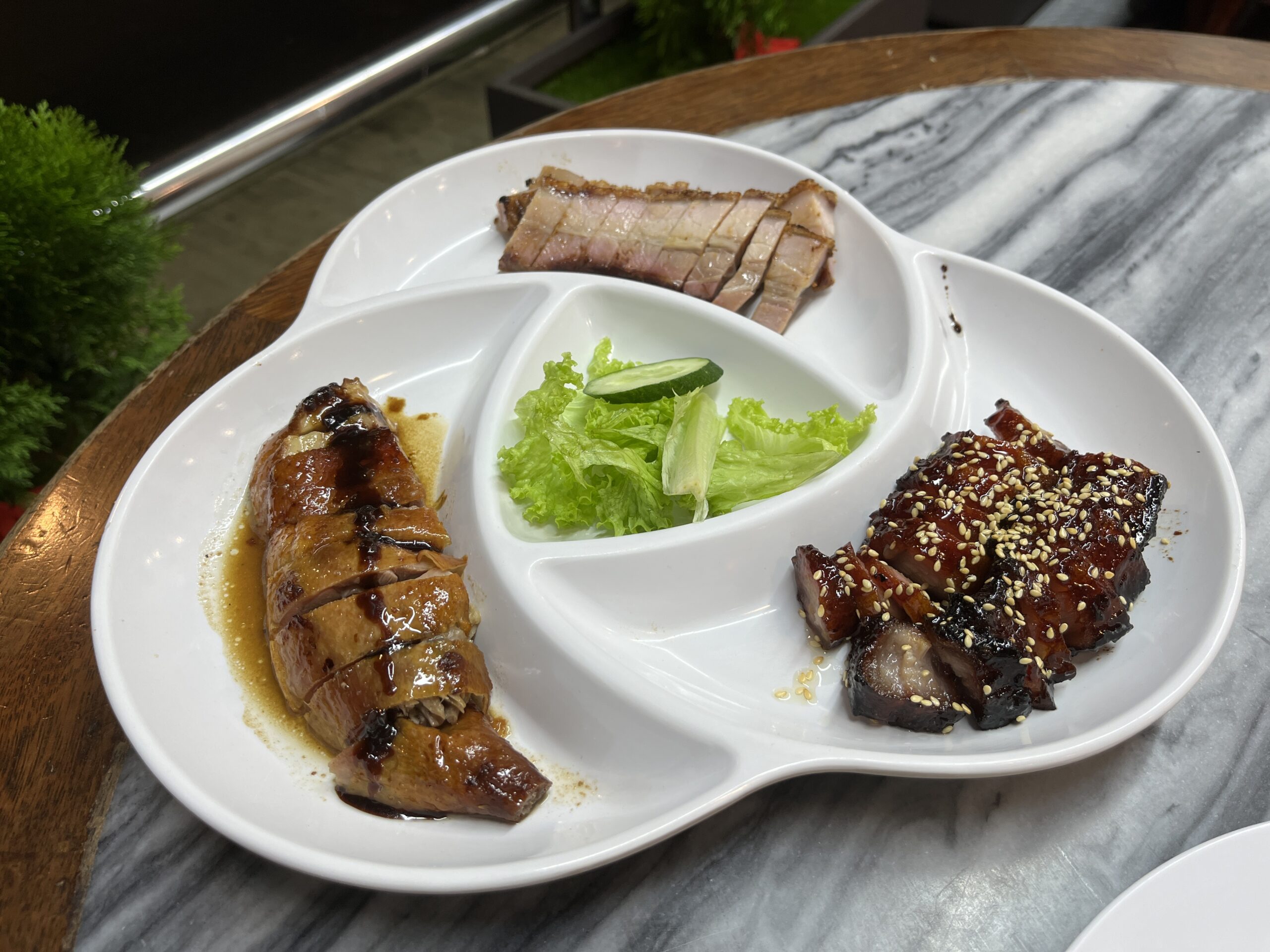 The XO was born out of necessity. I had looked up a lot of things on Google beforehand and then went for a walk, but most of it didn’t appeal to me. After 20 minutes, I was standing in front of the XO and thought to myself, I could either go right back because the break was almost over, or I could just pop in here for a bit. So, I decided to go in. I ordered the Classic BBQ Platter and the Claypot with eggplant. The BBQ wasn’t anything special (especially the duck always has a lot of bone fragments that are annoying). The Claypot, on the other hand, was great (there was something in it that I couldn’t quite identify, it could almost have been crab broccoli). Then there was a free dessert: boiled grains with fruit and sugar. Yeah, I wouldn’t have ordered that 😉