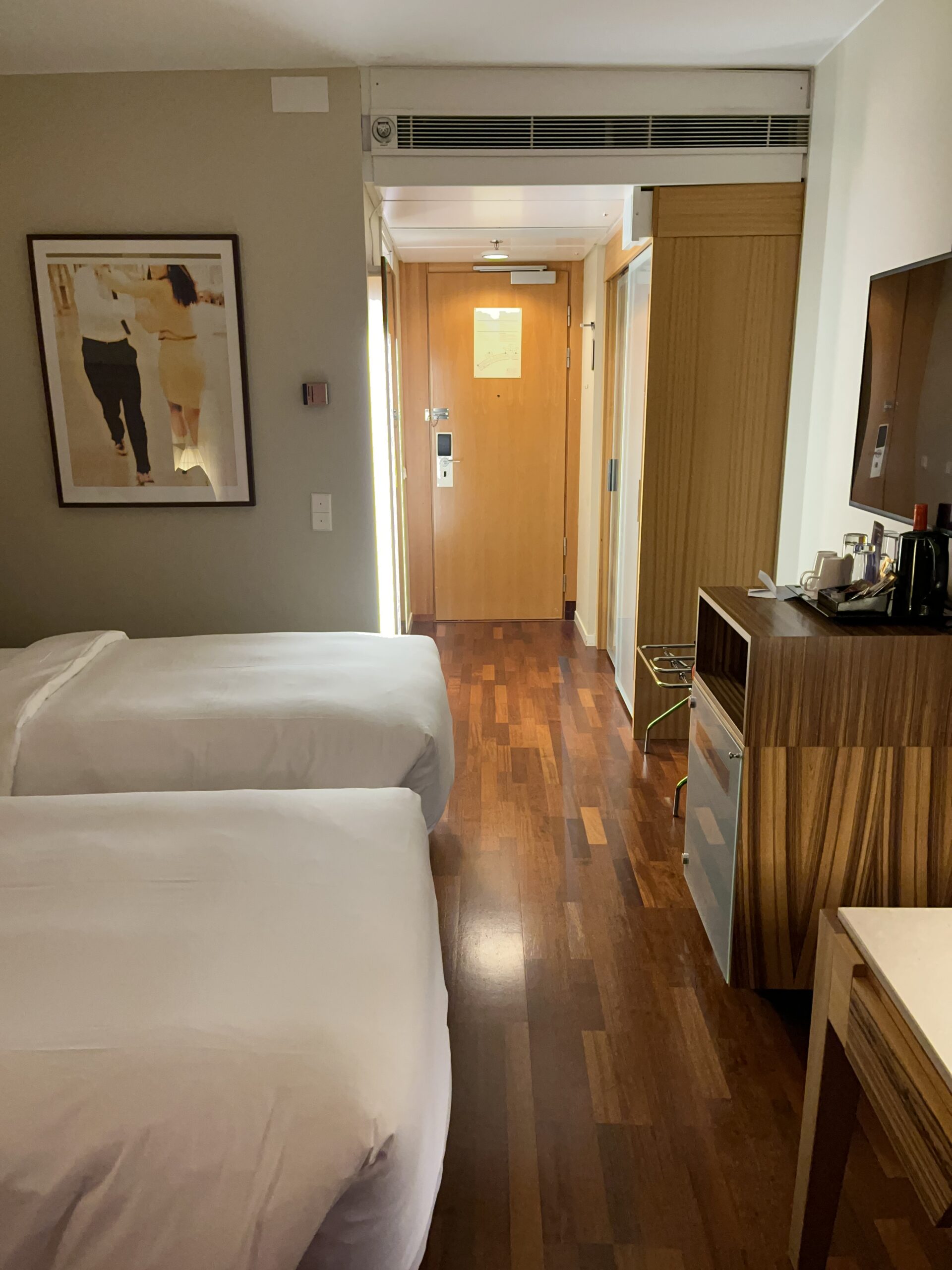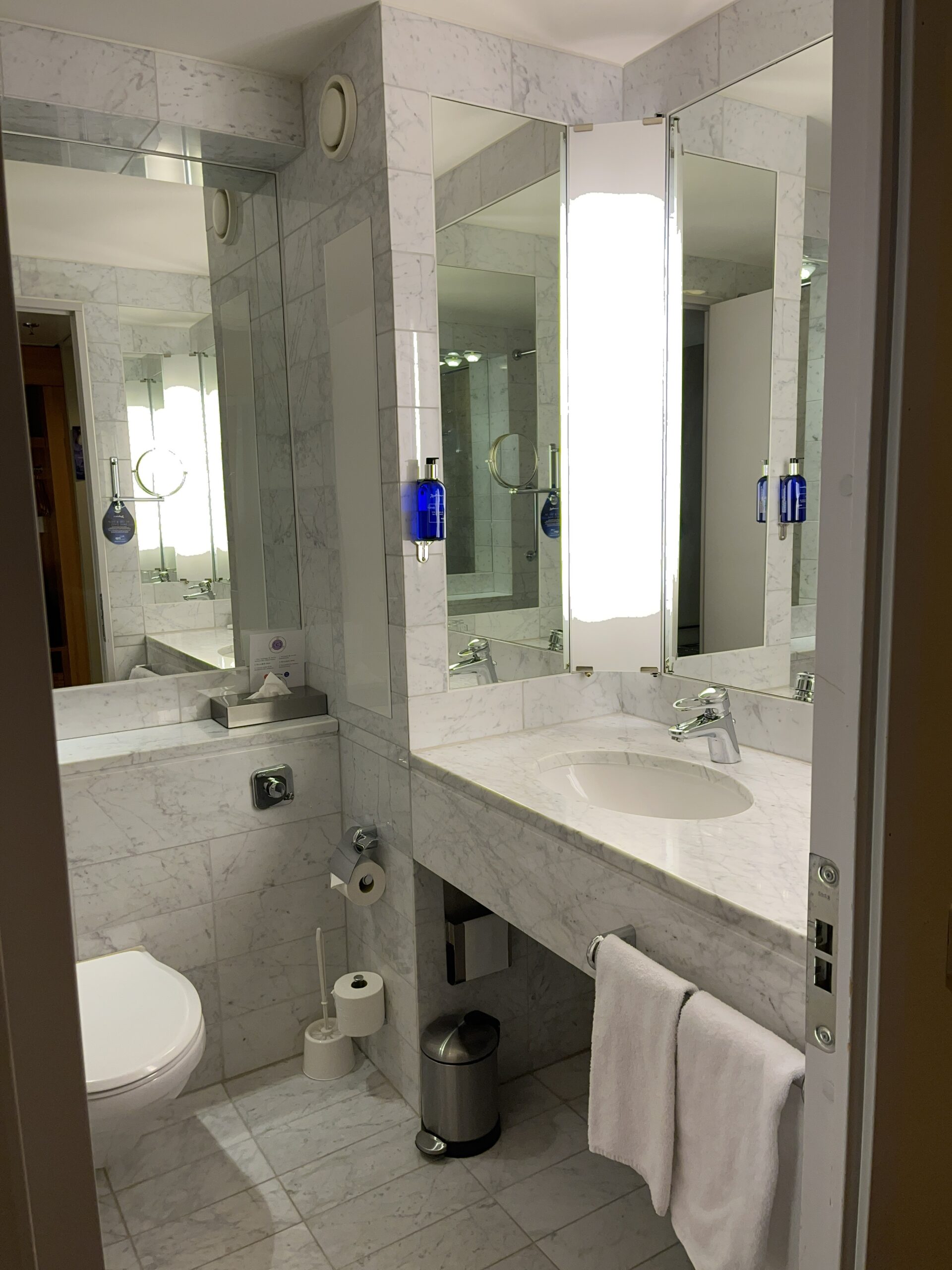After making a mistake last time and booking the Radisson outside the airport, this time it’s the right one. The Terminal Hotel, as the name suggests, is located right inside the terminal at ARN Airport. You can walk straight to check-in and security without having to leave the airport (it’s less than 5 minutes). The room itself overlooks the apron, allowing you to watch the hustle and bustle of the airport. The room is large enough for one night (the armchair is rather impractical and just takes up a lot of space). The bathroom had a small flaw: If you drain the water too quickly, it comes out the other side, and the bathroom quickly floods.