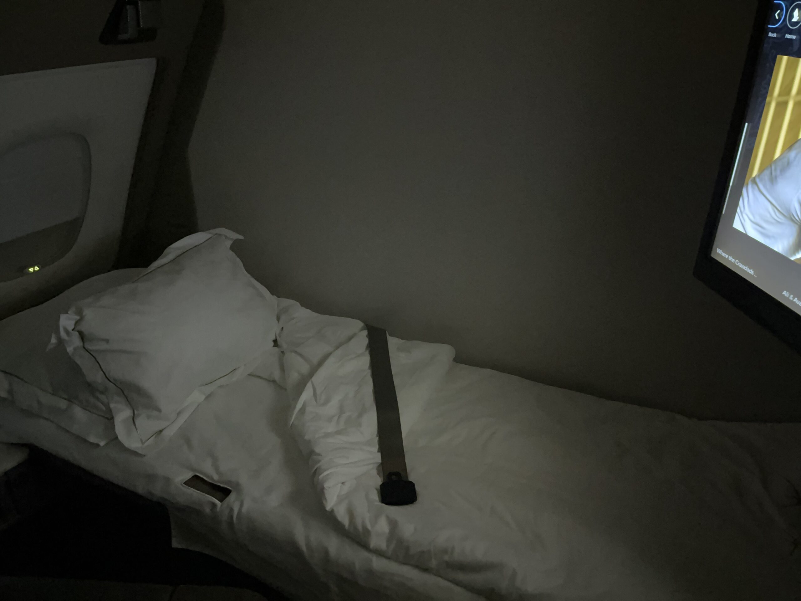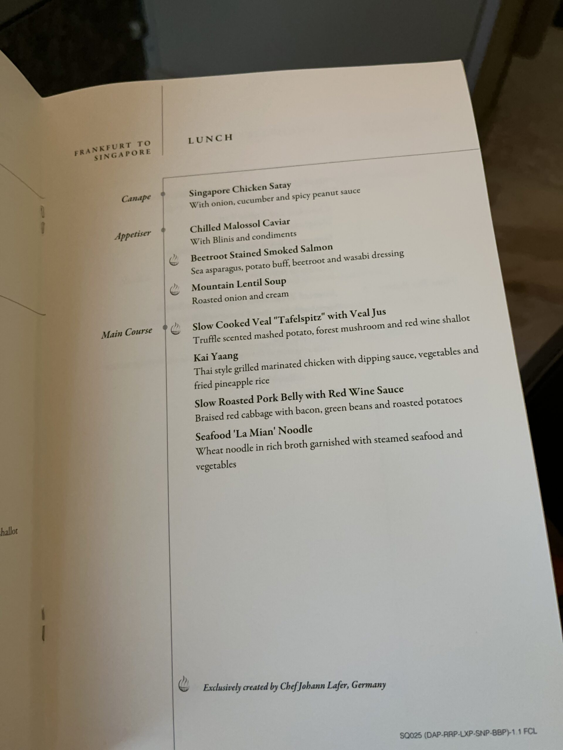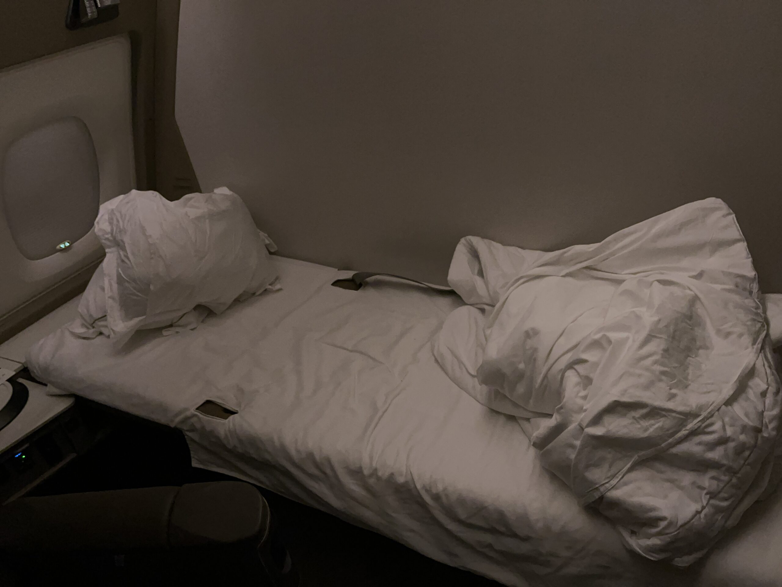 Now for the pleasant part of the journey in the new Singapore Suite from FRA to SIN on the A380. Since Singapore Airlines is no longer offering this flight as of the summer schedule, I had to hurry a bit 😀 The private cabin is huge for an airplane. You have your own swivel seat and a separate bed. Even though the bed in the 777 may be a bit wider, the one here is more comfortable thanks to the continuous surface. I have never slept so well on a plane (but that might also have been due to the quiet flight in the A380). The service is, as usual with Singapore, of a very high standard, both in terms of the food and the overall service. First, there were lots of Krug 😉, which I also chose for the caviar. Then there was the Johan Lager menu with soup and boiled beef, both very tasty. For breakfast, there was fruit and rice soup, also very tasty (I don’t usually eat much breakfast on airplanes).