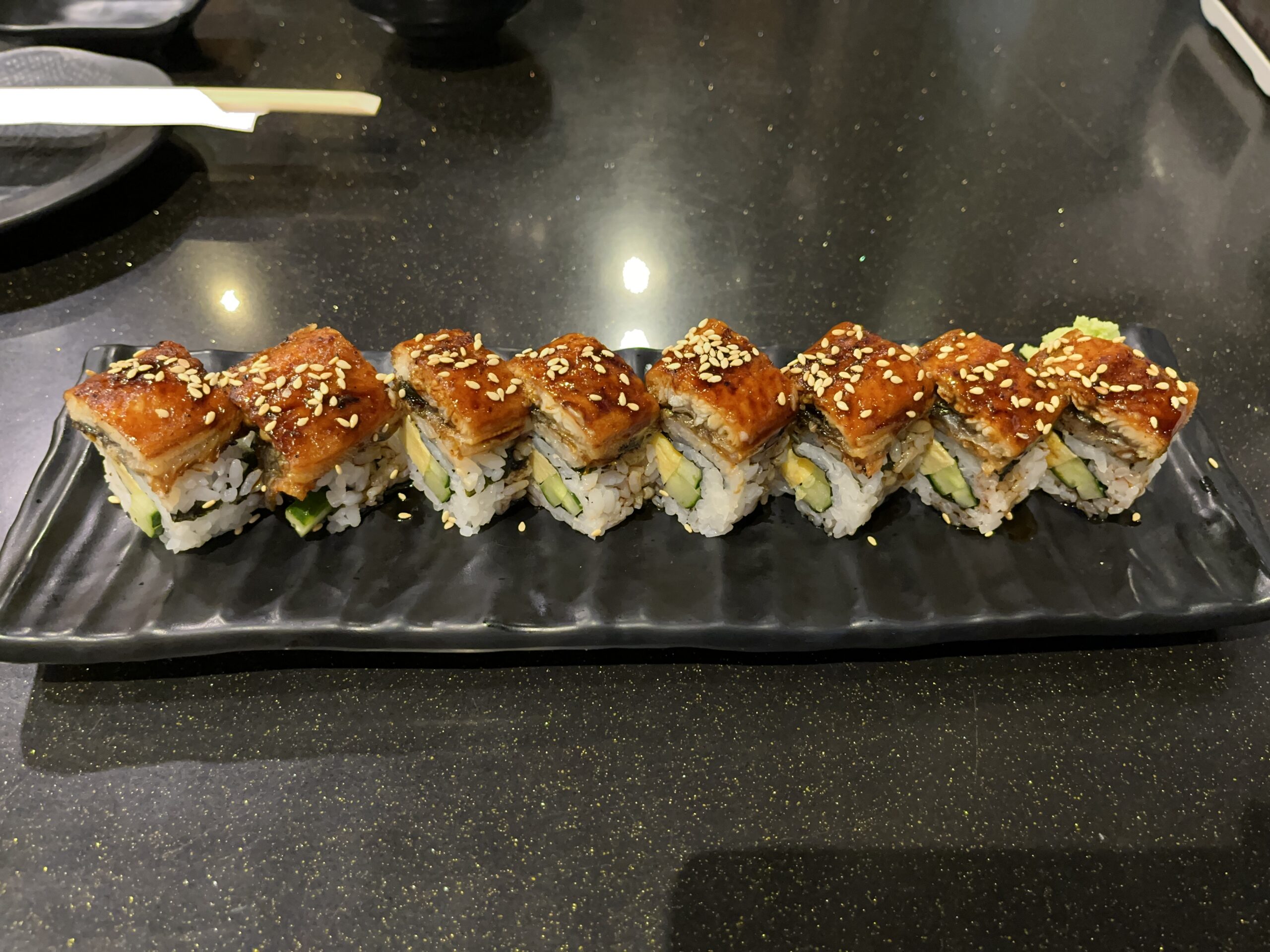 It was time for a change, and I was in the mood for sushi. Masa is located behind the other Novotel, so it’s not far away ;). I ordered two maki rolls, one with salmon and one with unagi (eel), as well as a salmon salad and spicy hotage scallops. I actually wanted fresh unagi, but they only had it frozen, so I passed. The rolls were very good, except they were cut a bit unevenly, so some pieces were quite large for a bite :). Even though the air conditioning was on, it wasn’t too cold (unlike Din Tai Fung the day before). All in all, a good sushi restaurant.