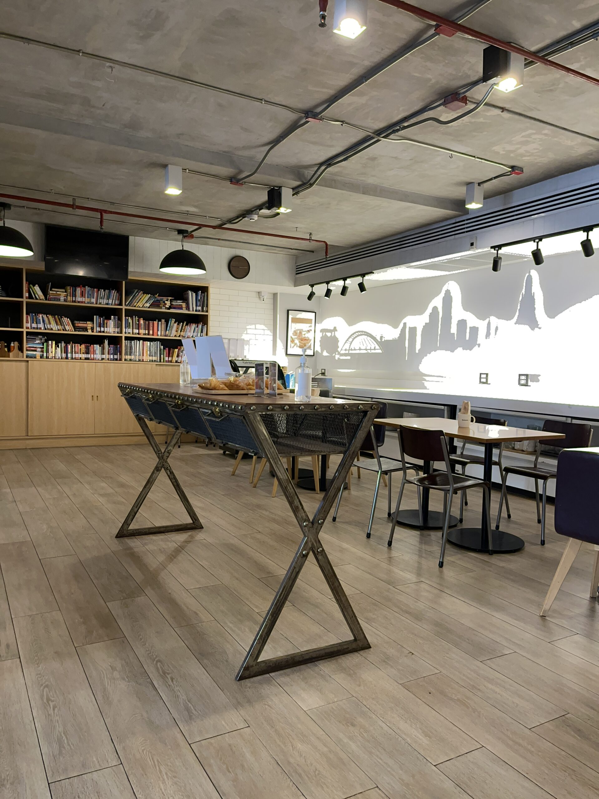 I was actually on my way to Beyond Bred, but a minor illness made me turn back. But somehow I still felt like something baked. Then I remembered the café, which is practically in the backyard of the Fitzgerald. However, the selection of baked goods is very limited; I only saw croissants (and I’m not even sure if they were homemade). Well, I went for the fried eggs with minced meat and a mango-almond milkshake. The fried eggs weren’t exactly great. The shake was supposed to have passion fruit, but since it wasn’t available, they replaced it with bananas. Okay, the shake wasn’t bad. But I wouldn’t really recommend it as a breakfast spot.