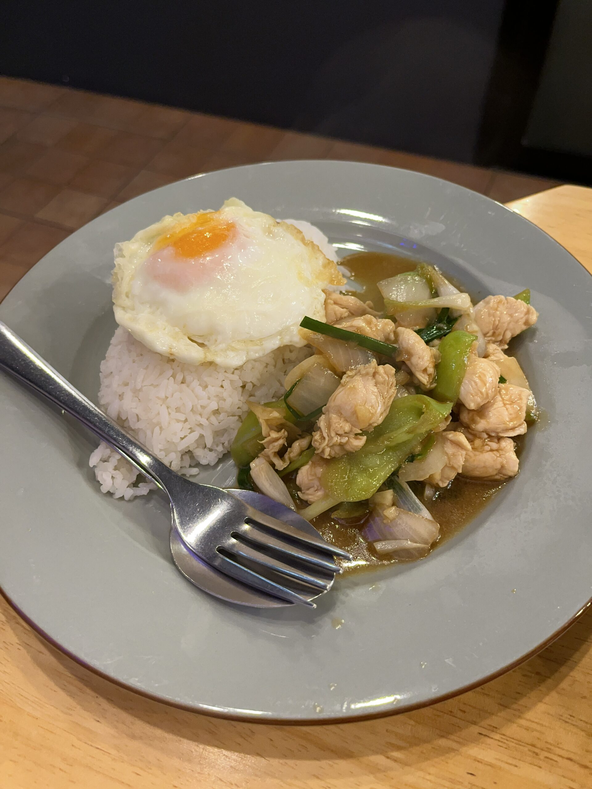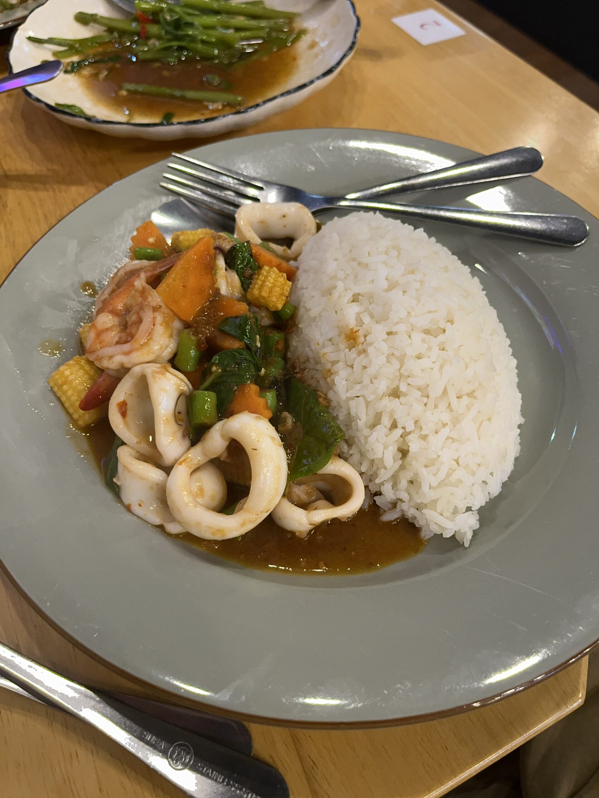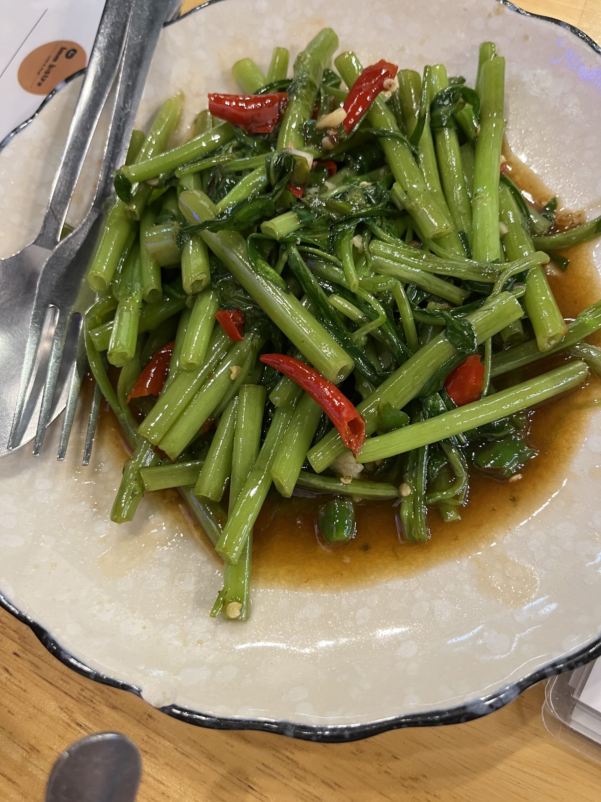 We actually wanted to go to Na, but it was full. As we stood there thinking about it, a waitress from Na came over and said that imm was the same, so we went here. Ordering was a bit difficult; the selection was huge, but most things were no longer available (soups, mackerel, etc.). So we just ordered the usual things (morning glory, som tham thai, etc.). The food wasn’t bad, but if you were expecting something different 🤷♂️ Although, in our defense, imm is probably more geared towards lunch, since there are only offices around it, and it closes pretty early. But it’s not enough to warrant a repeat.