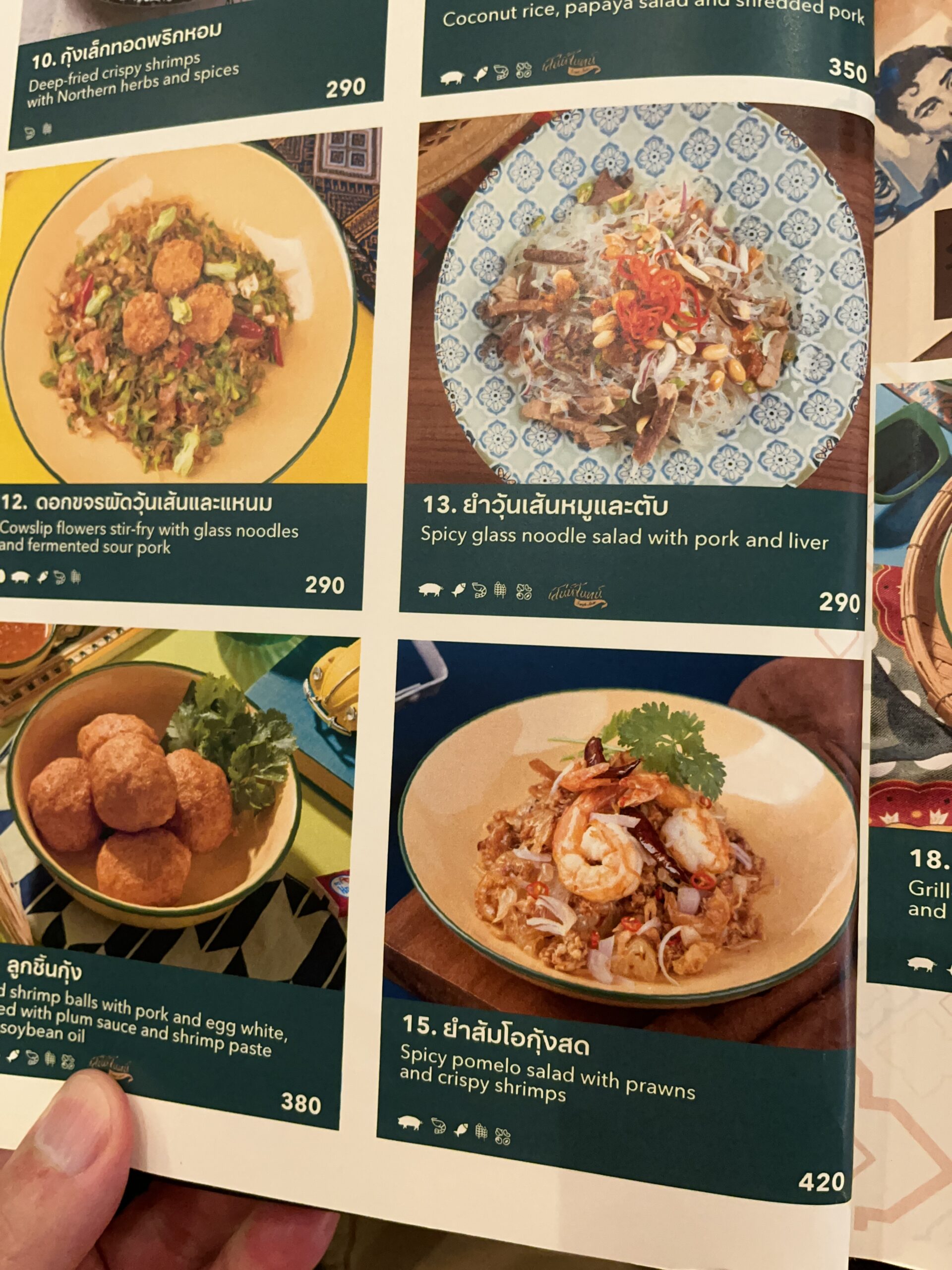 The 78 is actually a hotel restaurant, which isn’t usually my cup of tea, as they usually only serve ‘toned-down’ (Franang-style) Thai food. But since it was also a recommendation from the Michelin app, I decided to give it a try. It was strange that I was actually the only customer. I ordered the spicy pomelo salad with shrimp, the batella curry with crap, and a lemongrass-ginger iced tea. The pomelo salad wasn’t quite spicy, but it was still very tasty with the tamarind sauce. The curry, on the other hand, was quite spicy and not Farang-style 🤭. The iced tea was also good, although almost a bit too sweet. The price is a bit on the high side, but if you like authentic Thai food and are a bit concerned about hygiene on the street, this is a good place to eat. I’d be interested in the curry with soft-shell crap; I’ll see if they have a second sample 😅