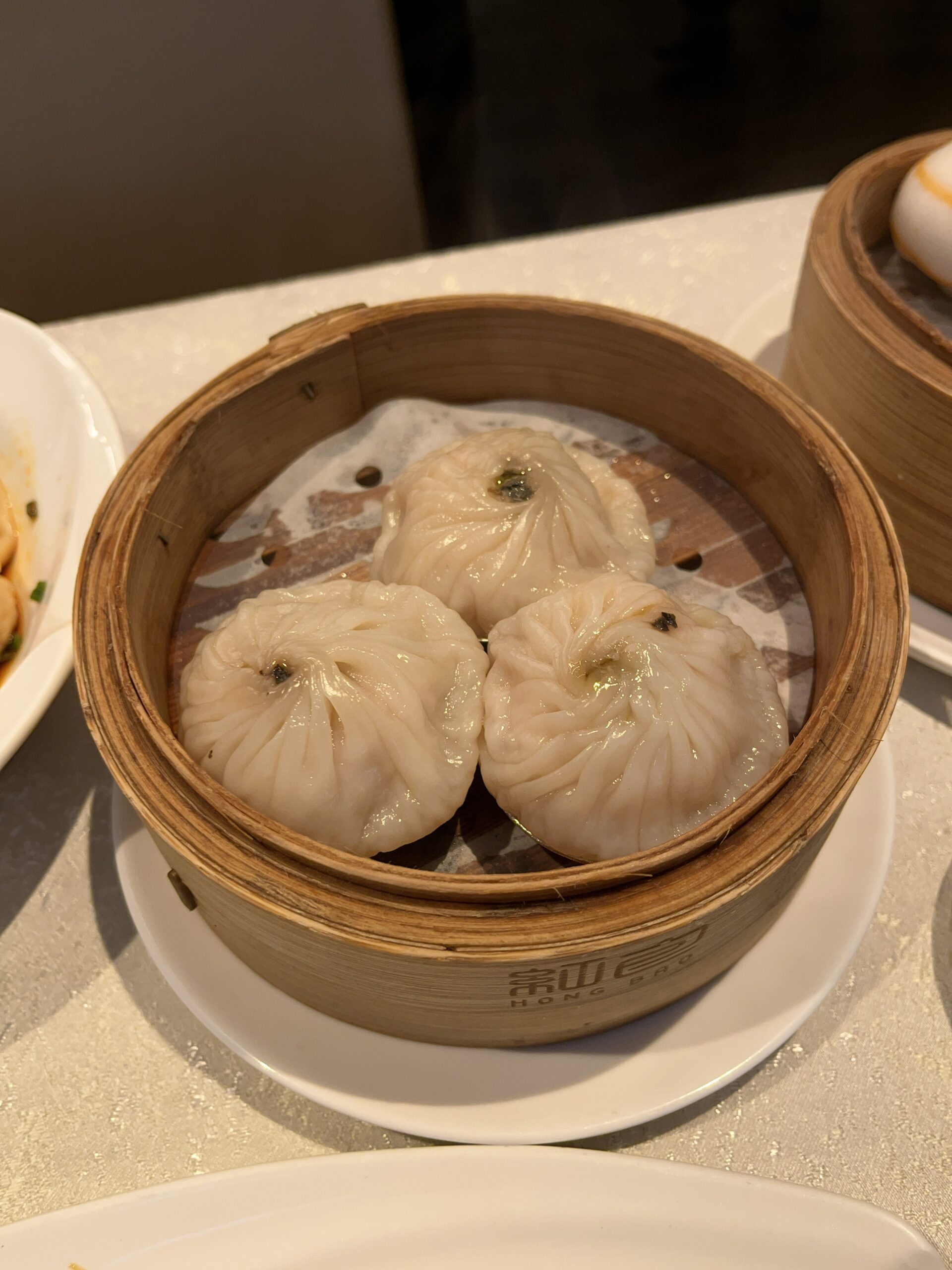 The Hong Bao I visited is on the 5th floor of the Central Embassy. As usual, I didn’t make a reservation, but after checking for availability, I was still allowed in ☺️. I actually came mainly for the dim sum, so I ordered accordingly: Custard salted egg buns, frozen gras xiao long bao, crispy duck rice roll, shrimp dumplings, chicken feet, and pig’s ears 🤭. The table filled up very quickly, and what can I say? It all reminded me a lot of Hong Kong. The pig’s ears were wonderfully dressed (you could also have them as a snack while watching TV in the evening). The same goes for the chicken feet; they have a unique texture and are superbly seasoned. The shrimp dumplings in red chili oil were also delicious. The Froe Gras Xiao Long Bao (coup dumplings) were also very good, but Din Tai Fung does a better job 😉. Then there were the custard salted egg buns, which I love as a dessert, but they came second (but I saved two for last 😇). The whole thing was a lot; one less dish would have easily been enough 😂, but I just wanted to try everything. The service was also excellent, and the dinner plates were changed frequently (it was almost embarrassing). All in all, I’ll definitely be back!