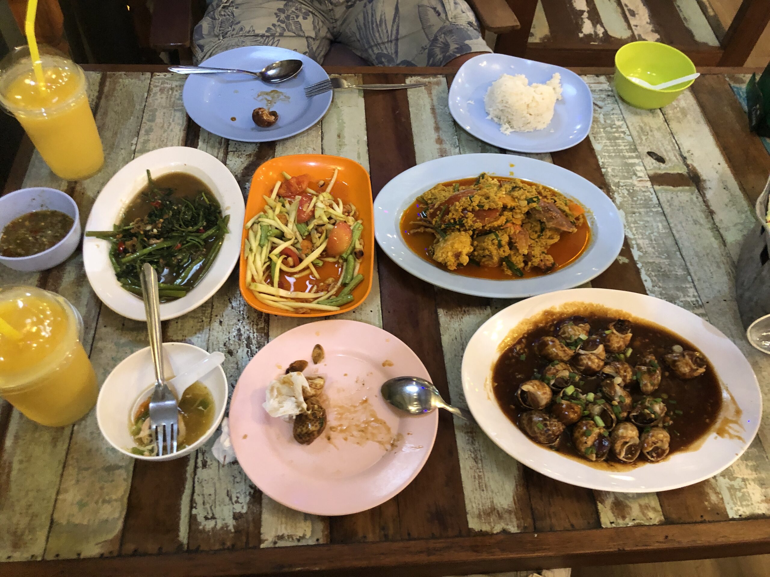Nana Seafood is currently the last seafood restaurant to open on Sukhumvit Road. Others have already closed (which isn’t always obvious on Google). We actually wanted to do a street food challenge on Soi 11, but ALL the shops were closed (even the cannabis trucks 😳). So we stopped in here on our way back (on our last evening). We ordered squid in lemon, crab curry, papaya salad, sea snails, and morning glory. The whole thing wasn’t exactly a hit. The whole thing really only thrives on its central location and the resulting stream of tourists passing by. It’s definitely not worth repeating (sorry for the last evening 😔).
