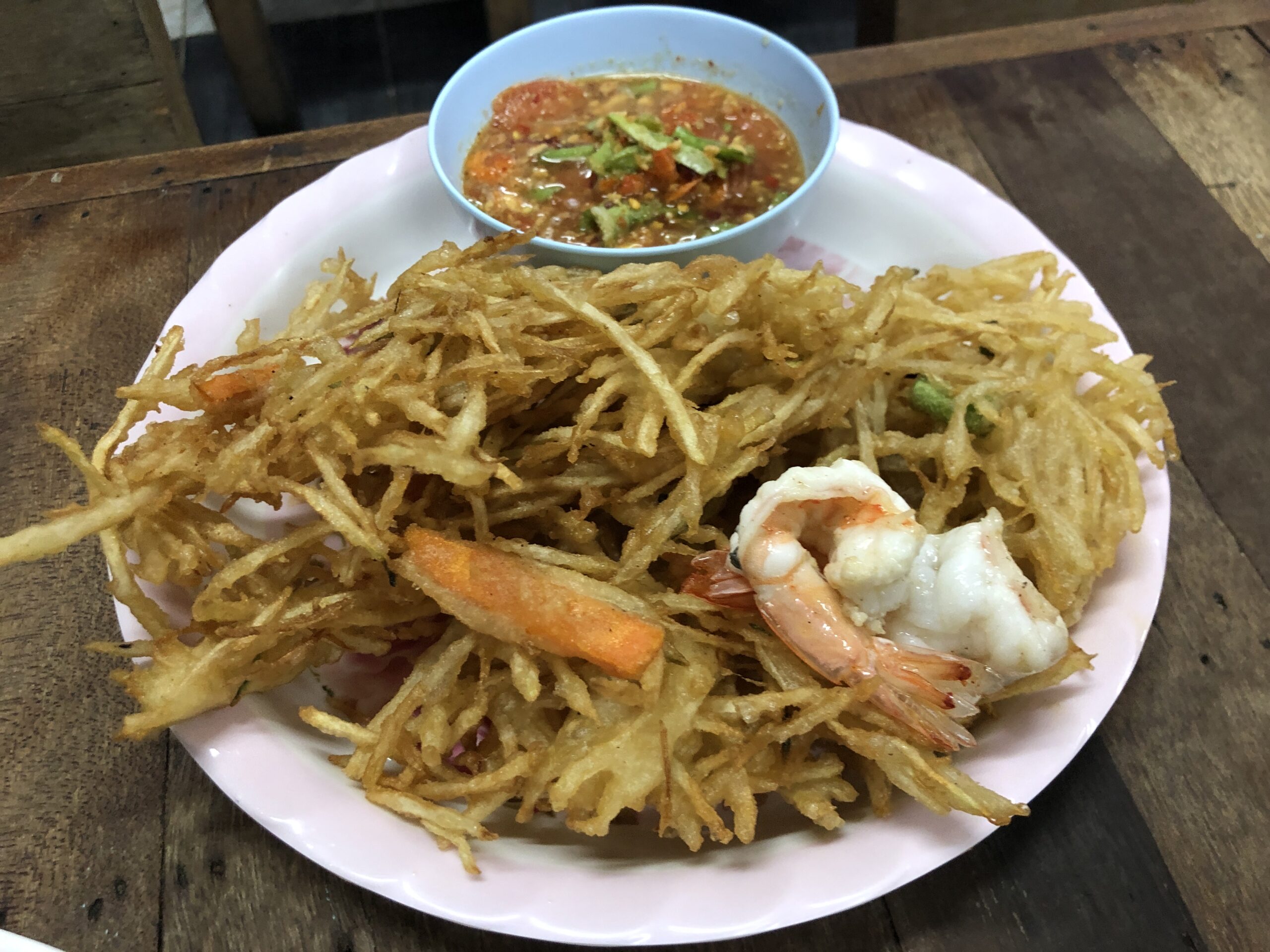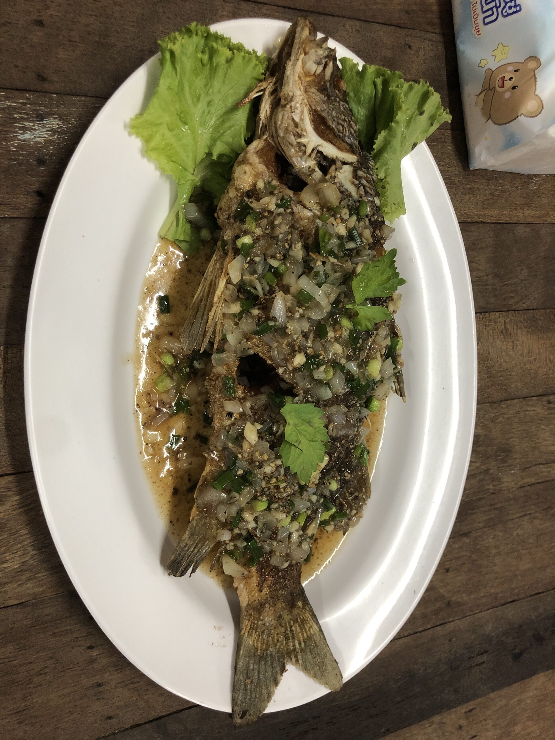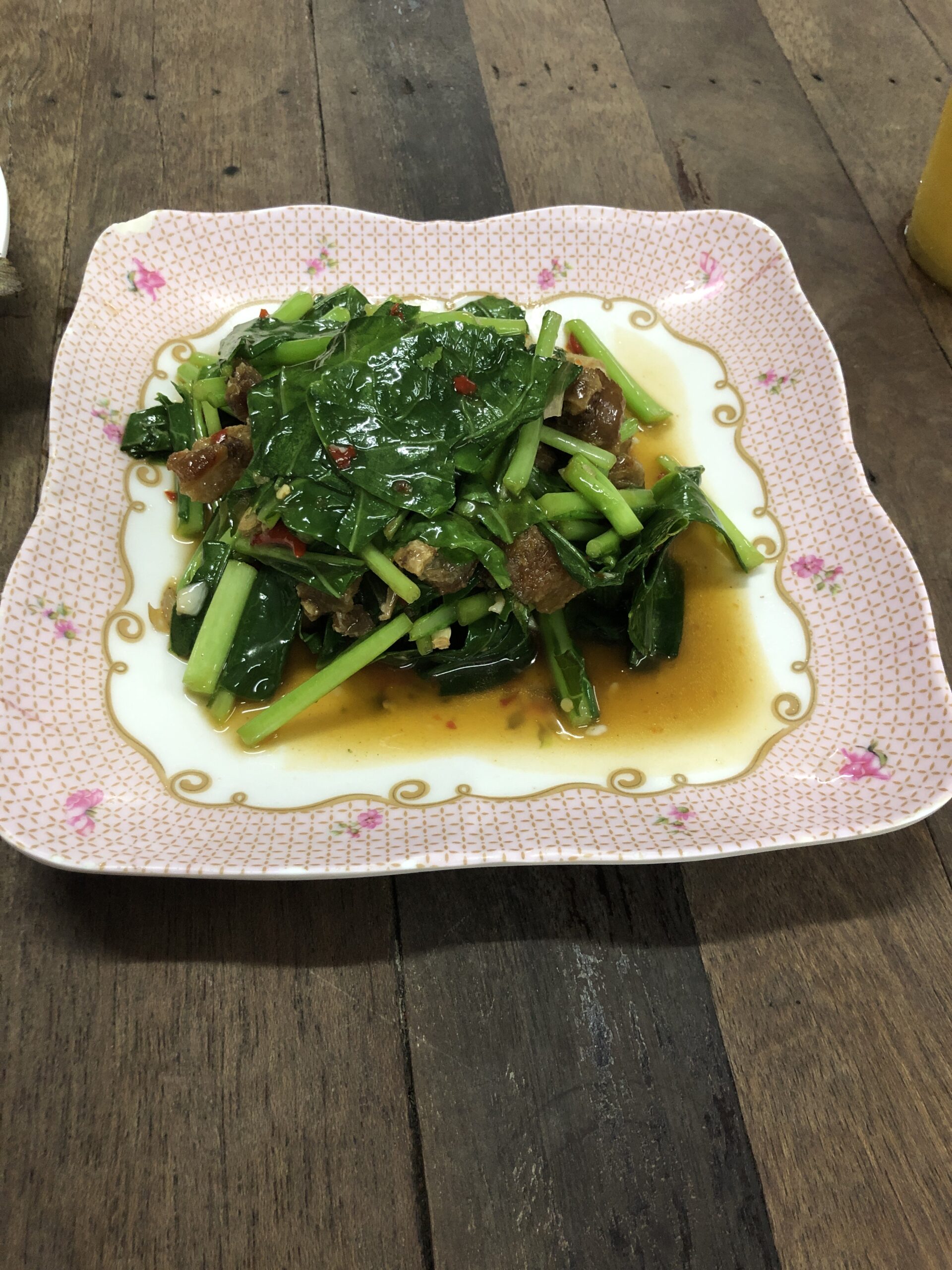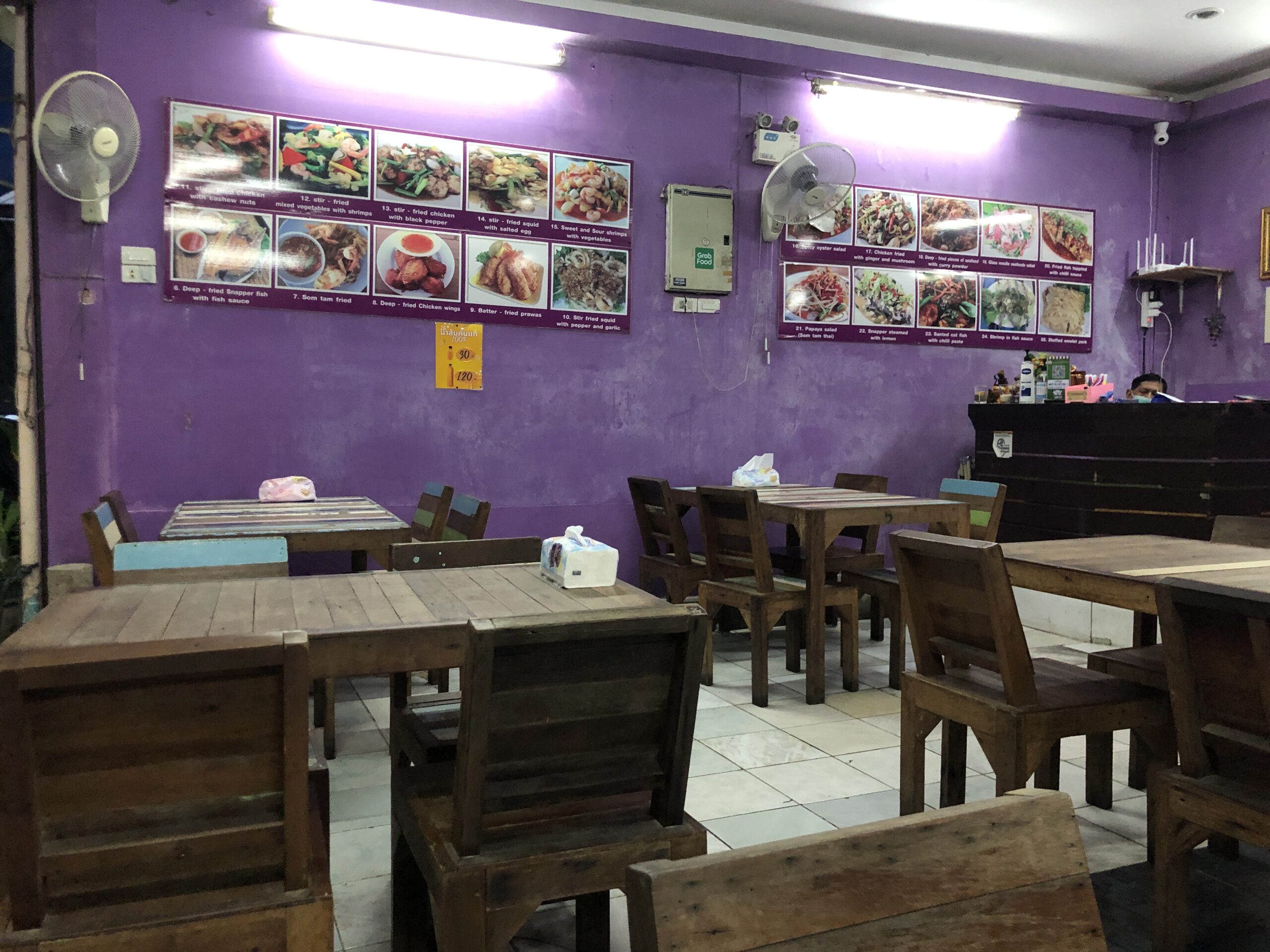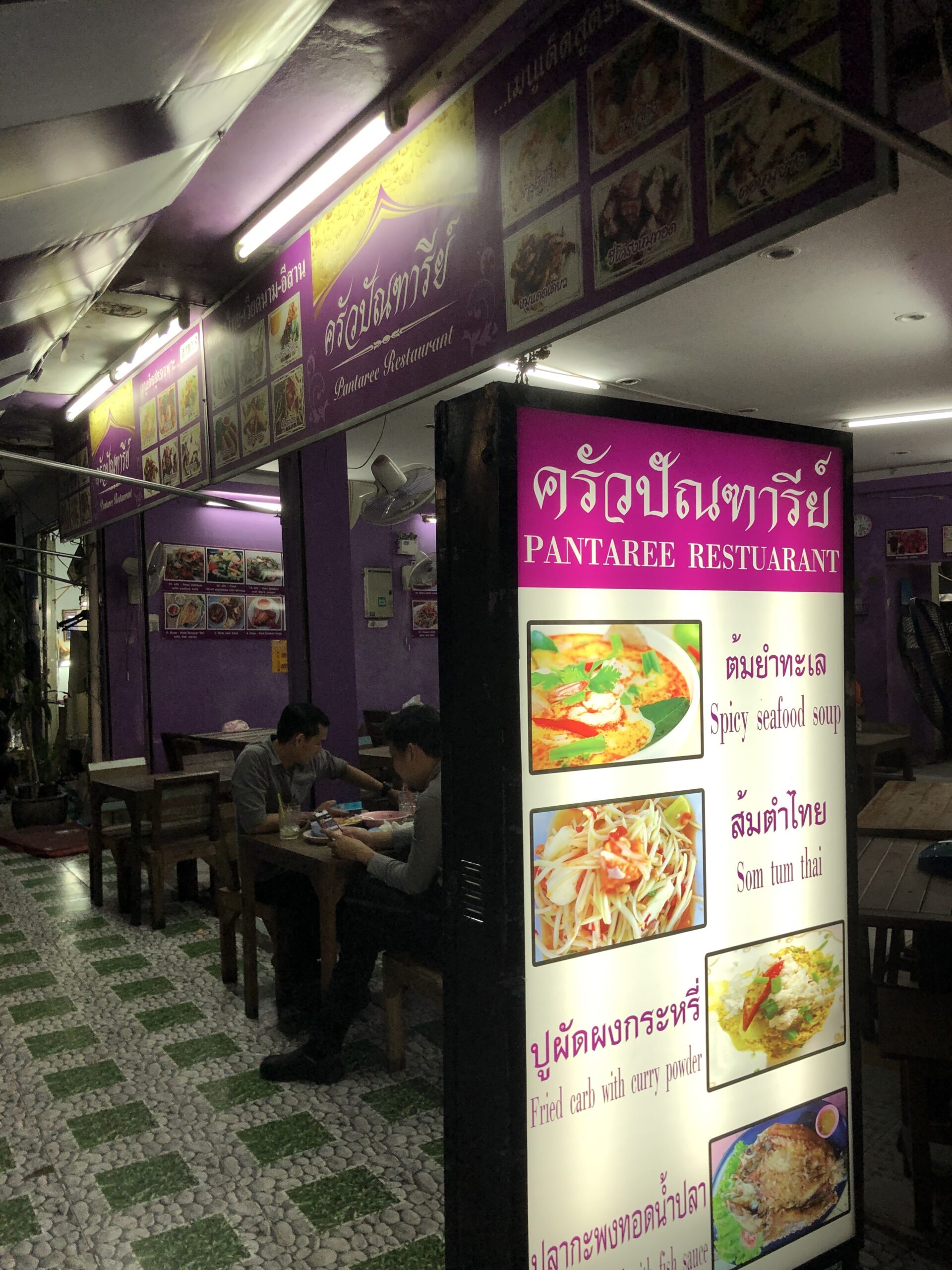 I’ve been coming here for a few days now, and there’s still something new nearby. Pantaree is located on Soi 8, in a small side street, barely visible from Soi 8. I only discovered it by chance on Google. They serve authentic Thai food (and there are more Thais in the shop than Farangs). I ordered kale with crispy pork, a fried papaya salad, and a deep-fried sea bass in pepper sauce, along with a small mango shake. Everything was delicious. I’ve had sea bass several times before, but usually with chili or fish sauce, but the pepper isn’t bad either (maybe it would have been even better with green pepper). The whole thing cost exactly 600 baht, which is reasonable for what’s on offer. Definitely worth a repeat!