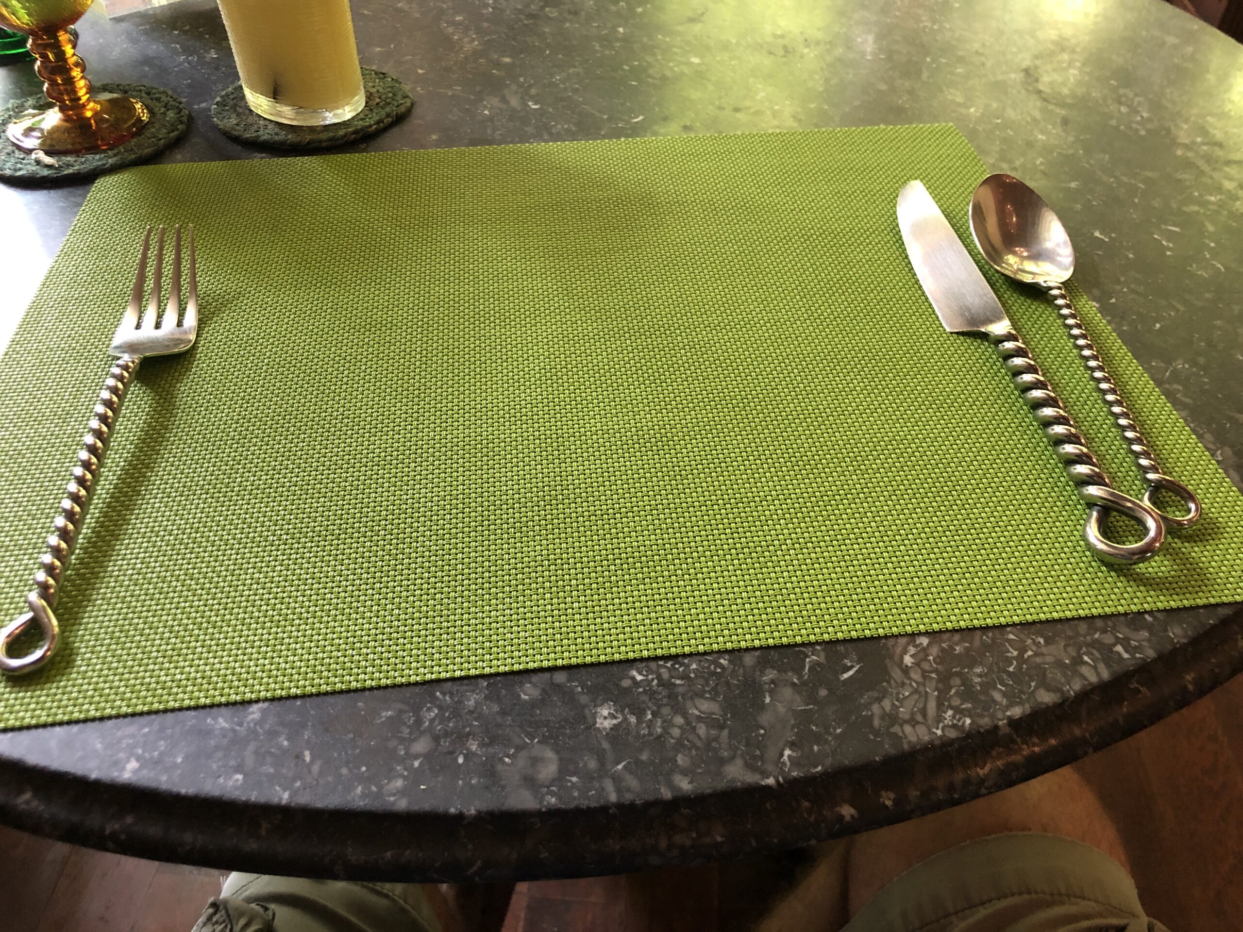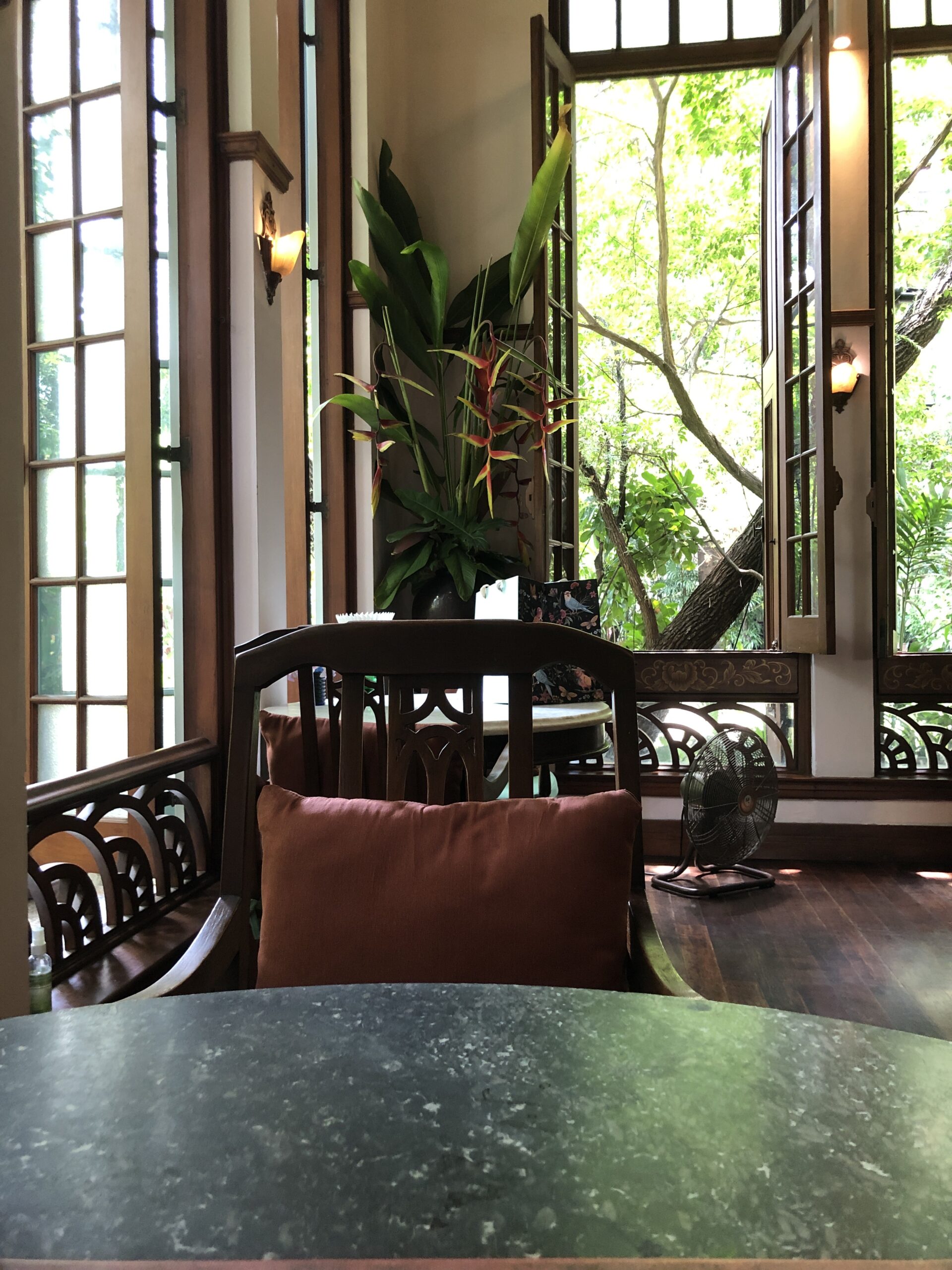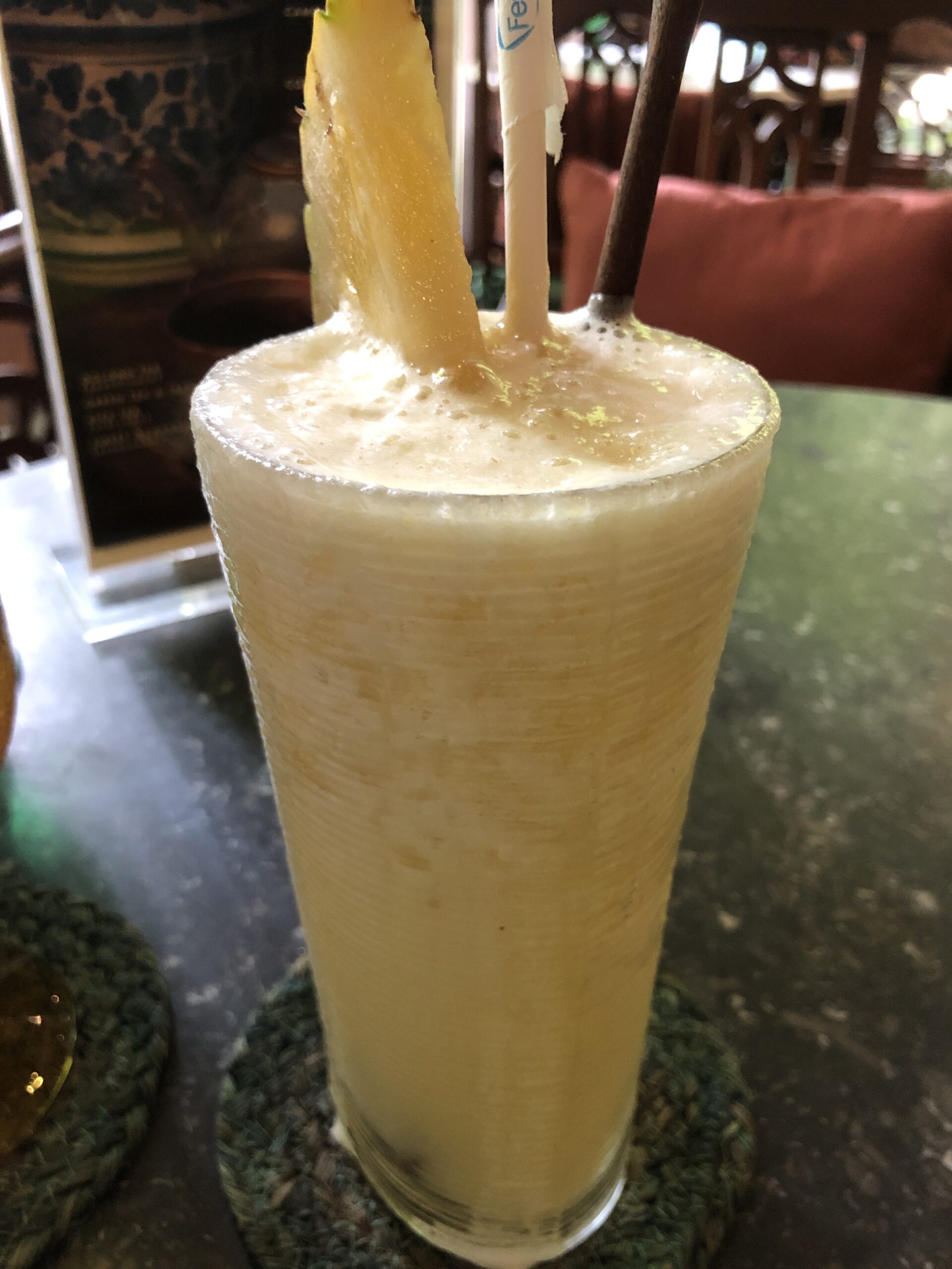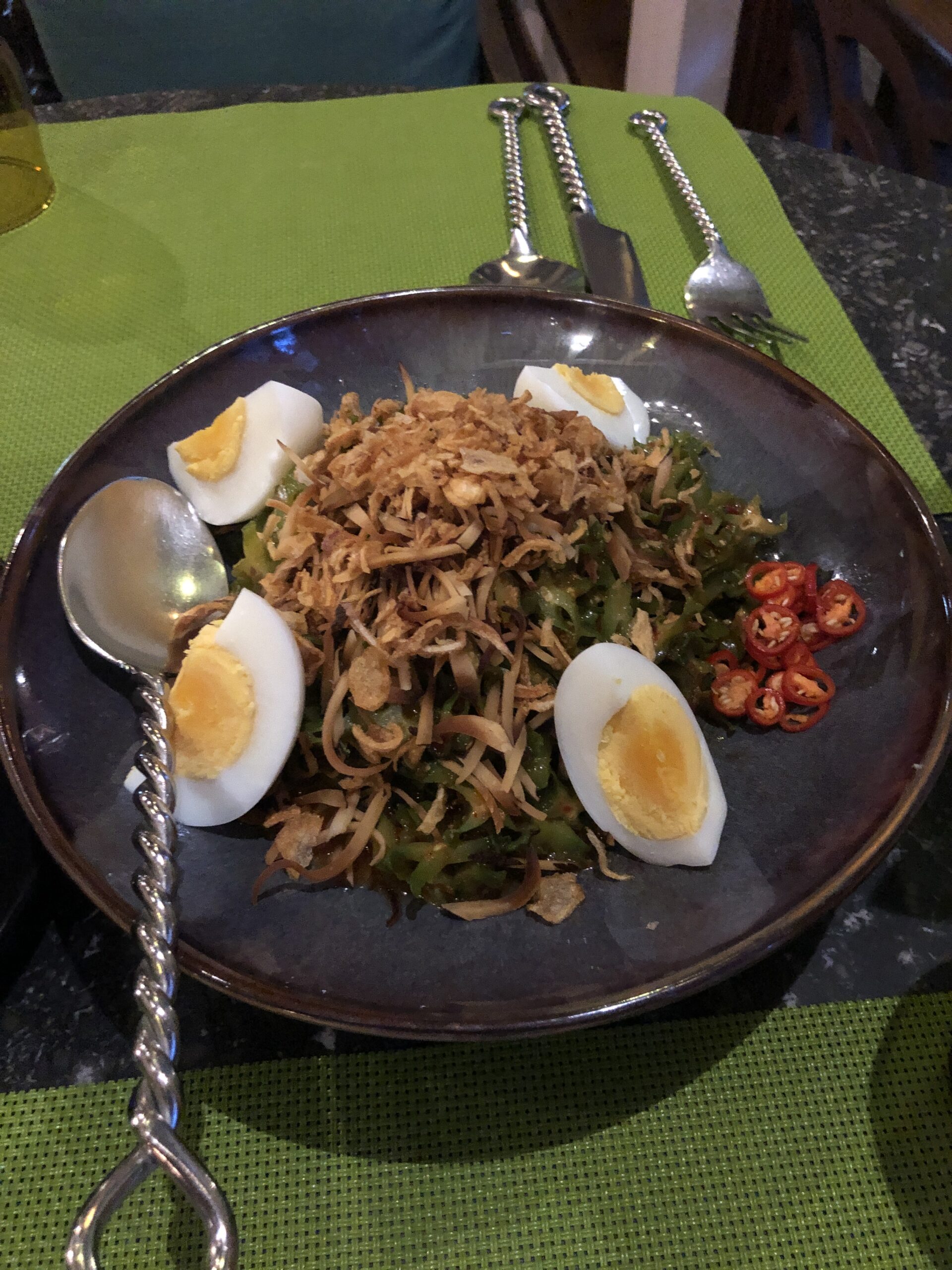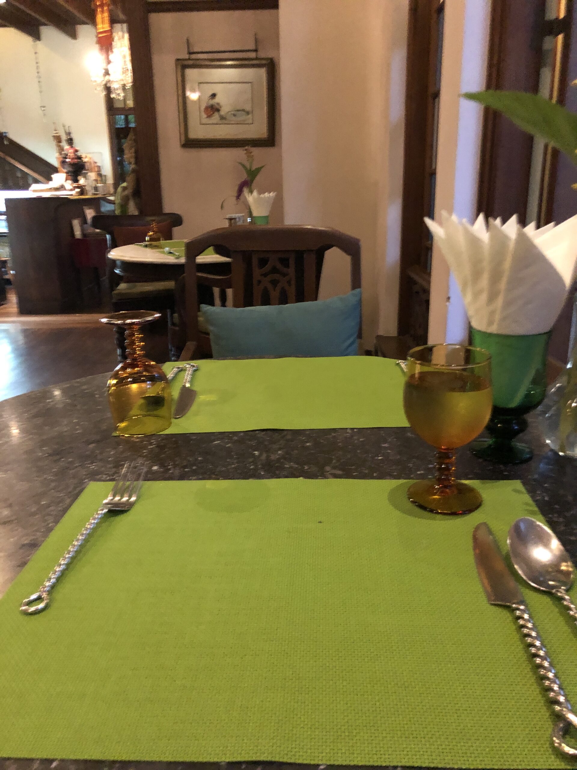 I actually wanted to go to Paste again on my last evening, but the last available slot was at 9 p.m., which was too late for me (and I’m also still battling a cold). Then I remembered Na Aroon; I’ve been here several times before, but it’s unfortunately a bit out of the way. Na Aroon is at the very end of Soi 1 and is very idyllically situated. It’s one of the few restaurants that doesn’t have air conditioning, just a couple of fans. But that evening also revealed its downside: lots of mosquitoes attacking you. Anyway, there was a delicious salad with tamarind sauce (I can’t remember what the green one was) and another Tom Yum Goong (you can never go wrong with that, except maybe in the First Class Lounge on a Thai airline 😀 ). There was also a pineapple ginger smoothie (unfortunately with a bit too little ginger this time).